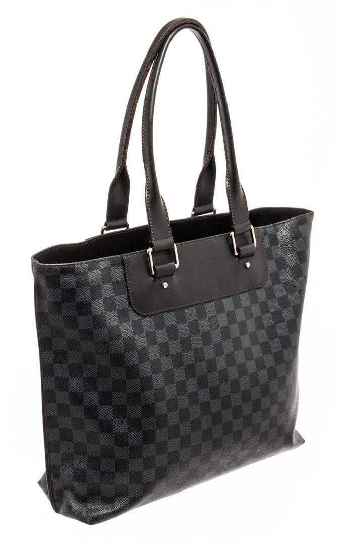 Louis Vuitton Black Damier Cobalt Voyage Tote Bag. All available information is listed in the description and shown in the photos. louis vuitton black damier cobalt voyage tote bag with exterior material: canvas (coated), exterior color: blue, interior material: microfiber, interior color: black, hardware color: silver Height 13", Width 14.5", Depth 4.5", Shoulder Strap Drop: 9" / 33.02 x 36.83 x 11.43 Cm