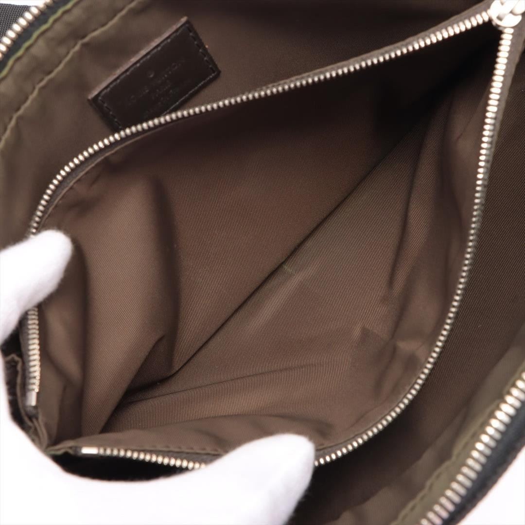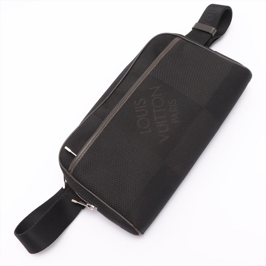 Black Damier Geant canvas Louis Vuitton Acrobat waist belt bag with silver-tone hardware, adjustable black canvas waist strap, brown leather trim, single zip pocket at exterior front wall, brown canvas lining, single zip compartment, four card slots and zip-around closure. Height: 6.5" Width: 10.25" Depth: 2" Strap Length: 37"