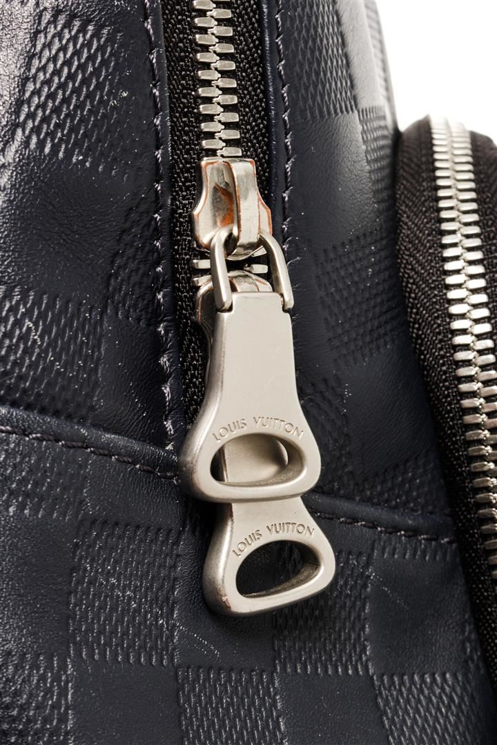 One Louis Vuitton Black Damier Infini Leather Avenue Backpack. Item is sold AS-IS. All available information is listed in the description and shown in the photo. Louis Vuitton Black Damier Infini Leather Avenue Backpack with silver tone hardware, black leather trim, black fabric lining, exterior zip pocket, interior open pockets, and a zipper closure.