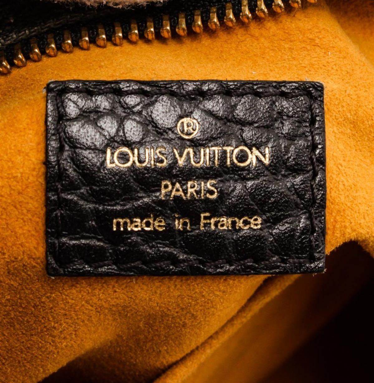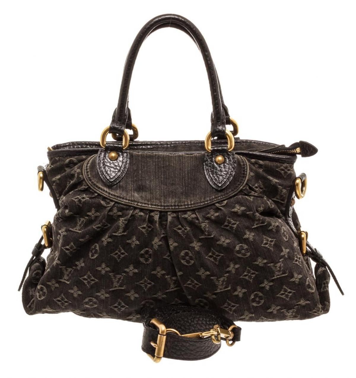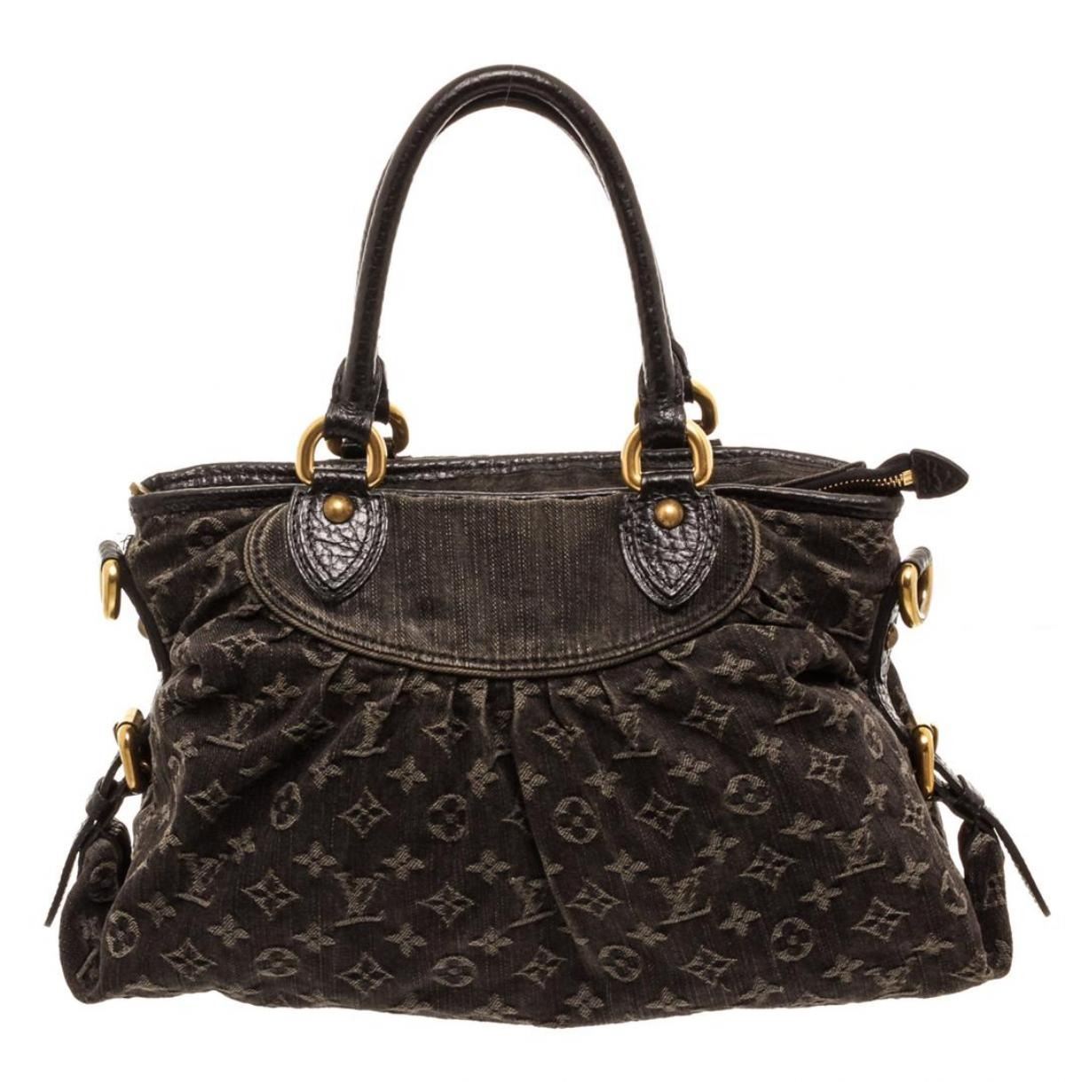 One Louis Vuitton Black Denim Monogram Neo Cabby MM Bag. Black monogram denim Louis Vuitton Denim Neo Cabby MM with brass hardware, dual rolled top handles, detachable flat shoulder strap with buckle adjustment, tonal leather trim, marigold Alcantara lining, dual slip pockets at interior wall and zip closure at top. MKX