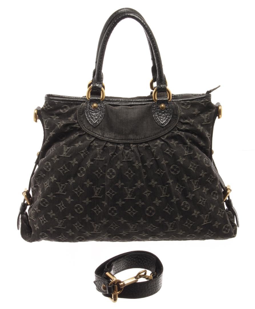 Louis Vuitton Black Denim Neo Cabby MM Shoulder Bag. All available information is listed in the description and shown in the photos. black louis vuitton denim neo cabby mm bag. the neo cabby mm with monogram denim body, rolled leather handles, a detachable and adjustable flat leather strap, a top zip closure, and an interior slip pocket. 12.6" L x 16.5" W x 4.9" D, 5.5" drop
