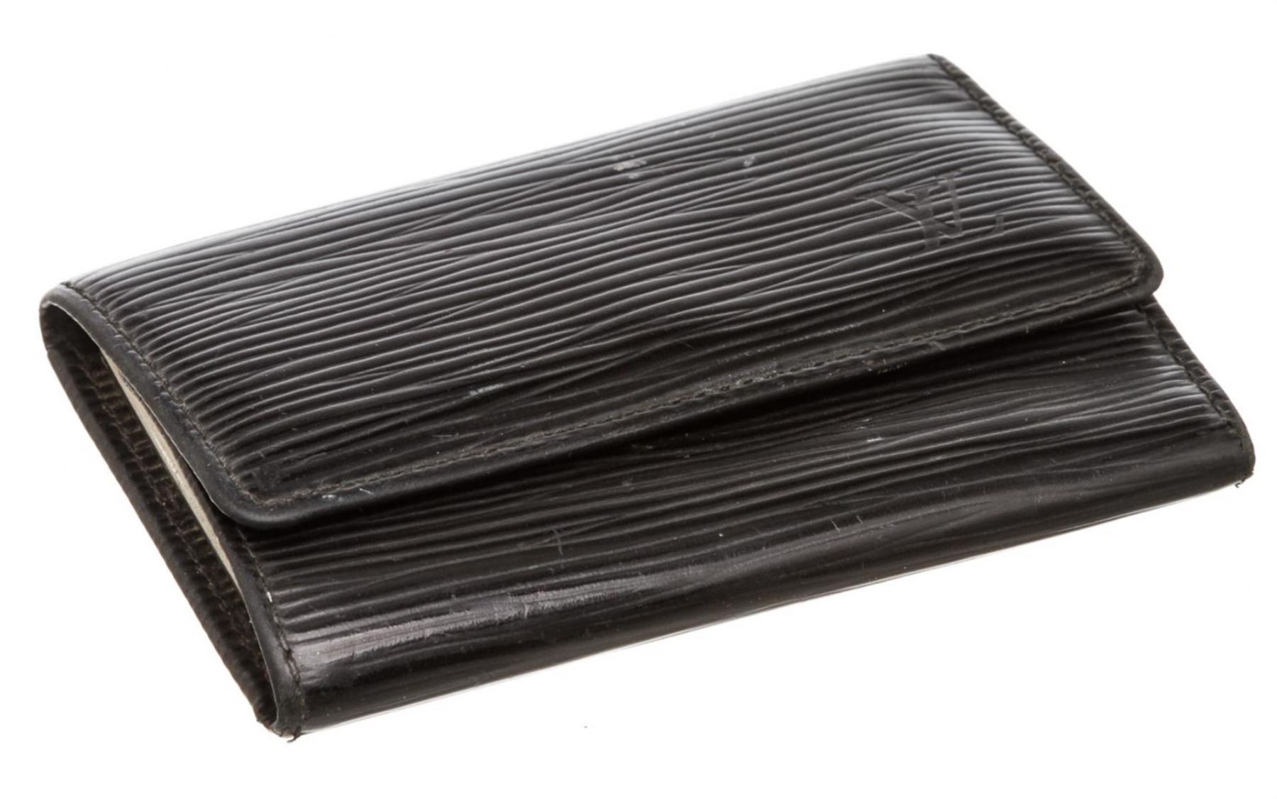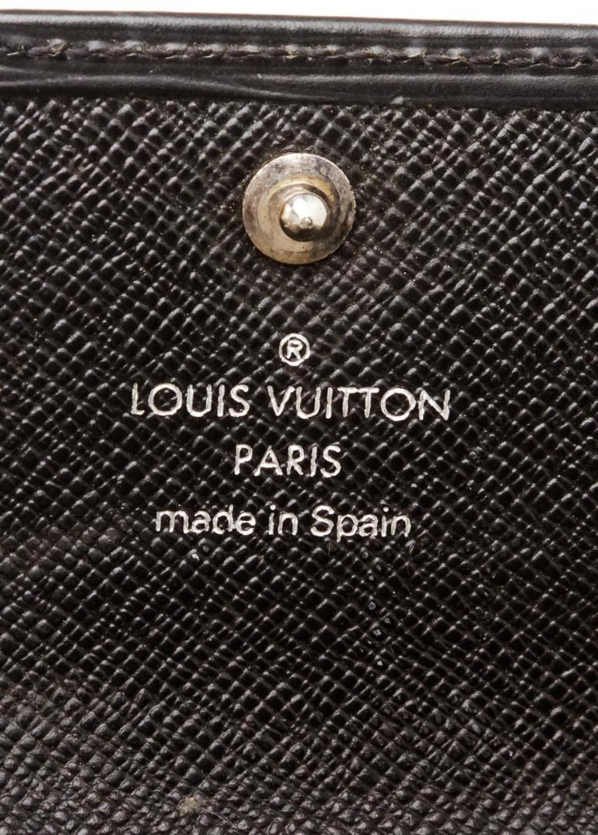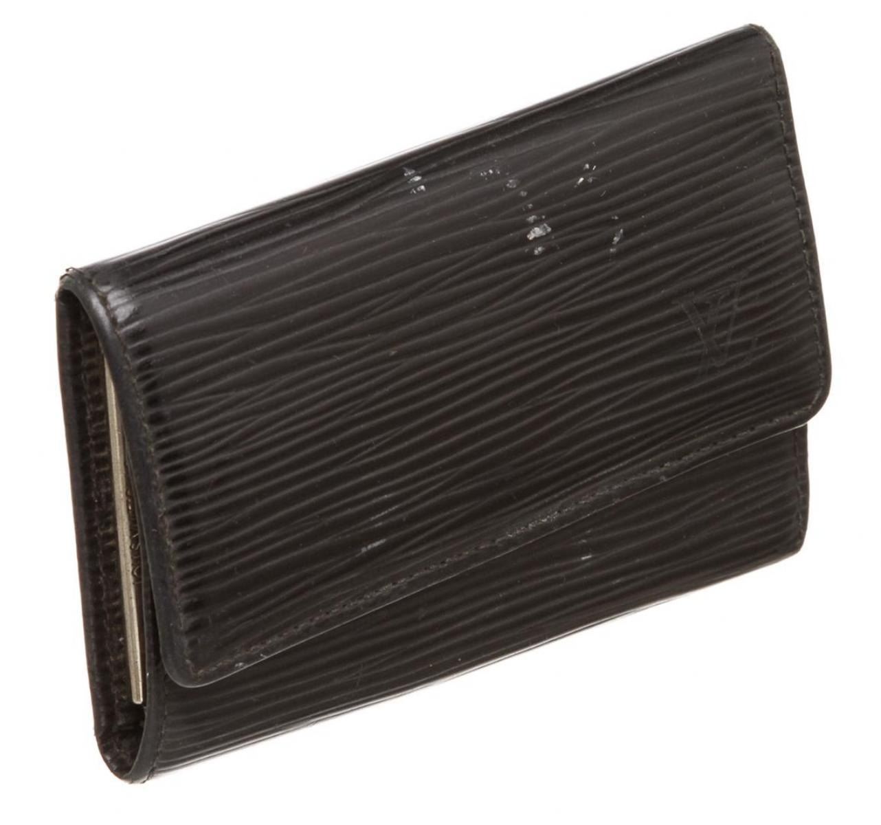 One Louis Vuitton Black Epi Leather 6 Key Holder. Black Epi leather Louis Vuitton key holder with gold-tone hardware, debossed logo at front, tonal leather interior, key clasps and snap closure at front flap. MKX