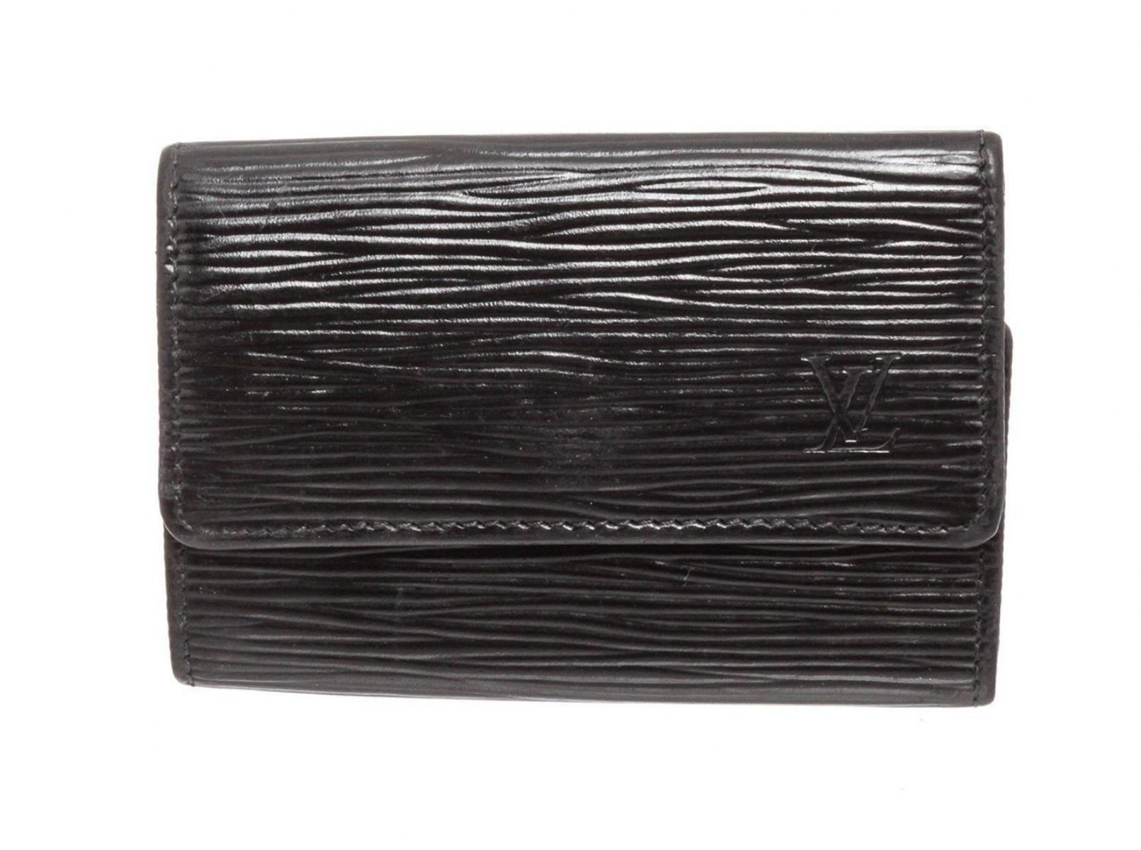 Louis Vuitton Black Epi Leather 6 Key Holder with Black-tone hardware, Black Epi leather trim, exterior Flap pockets, interior Flap pockets, and Flap closure. Measurements: Length: 4.25 in / 11 cm Width: 25 in / 64 cm 3 in / 8 cmCONDITION: Pre-Owned Good overall, please see photographs for detail.