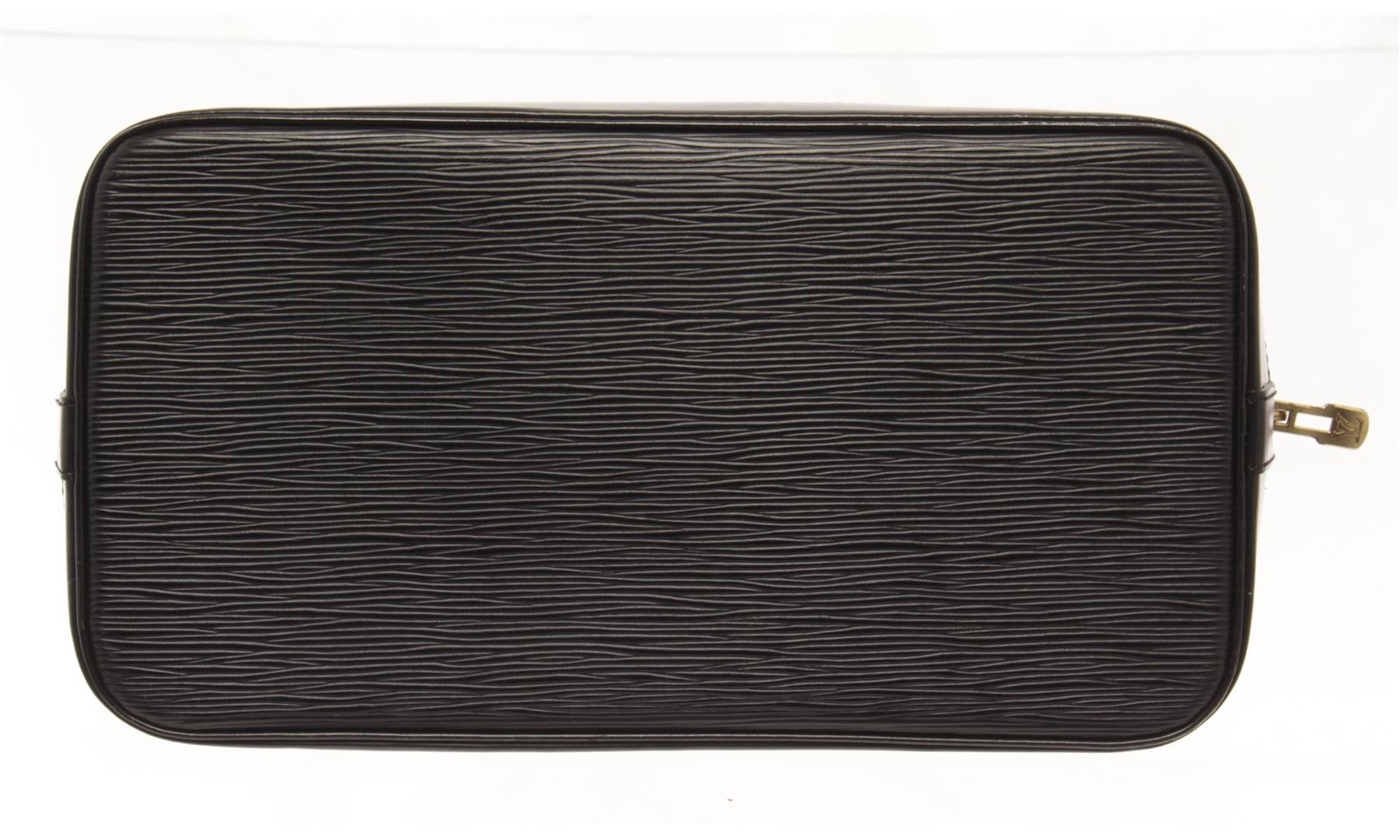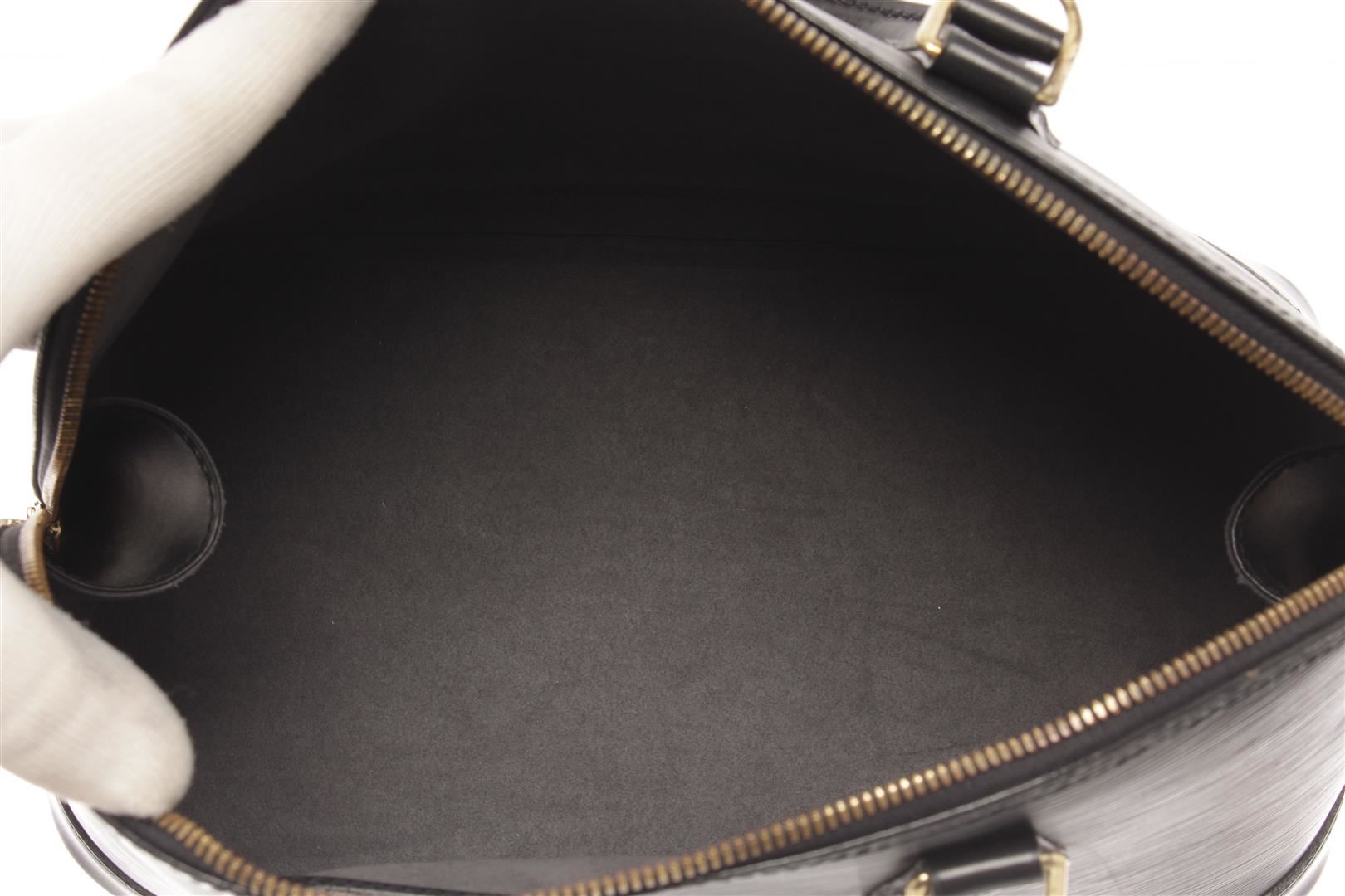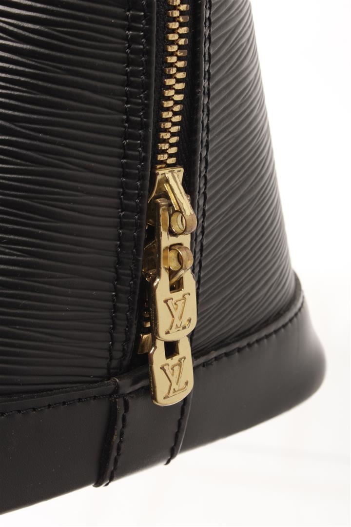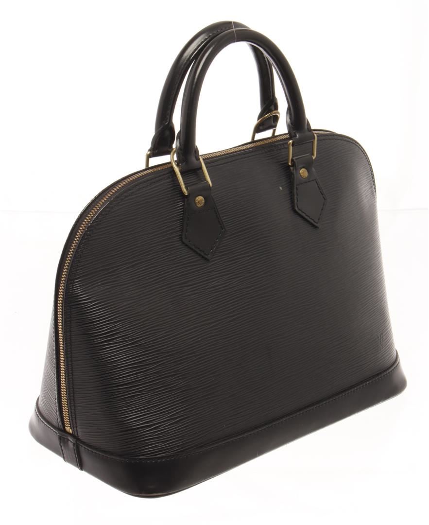 One Louis Vuitton Black Epi Leather Alma PM Satchel Bag. Item is sold AS-IS. All available information is listed in the description and shown in the photo. louis vuitton black epi leather alma pm satchel bag with gold-tone hardware, epi leather body, rolled handles, a top zip closure, and an interior slip pocket. 9.1" L x 12.8" W x 6.3" D, 3.1" drop / 23.11 x 32.51 x 16.00, cm 7.87 drop cm