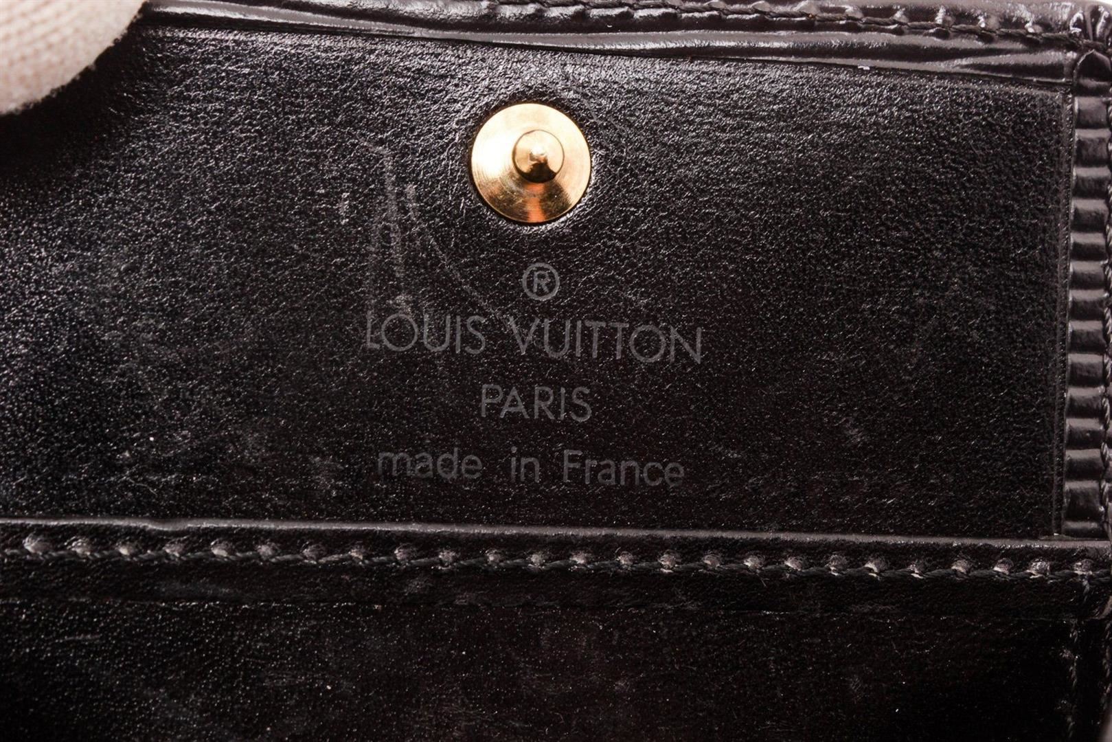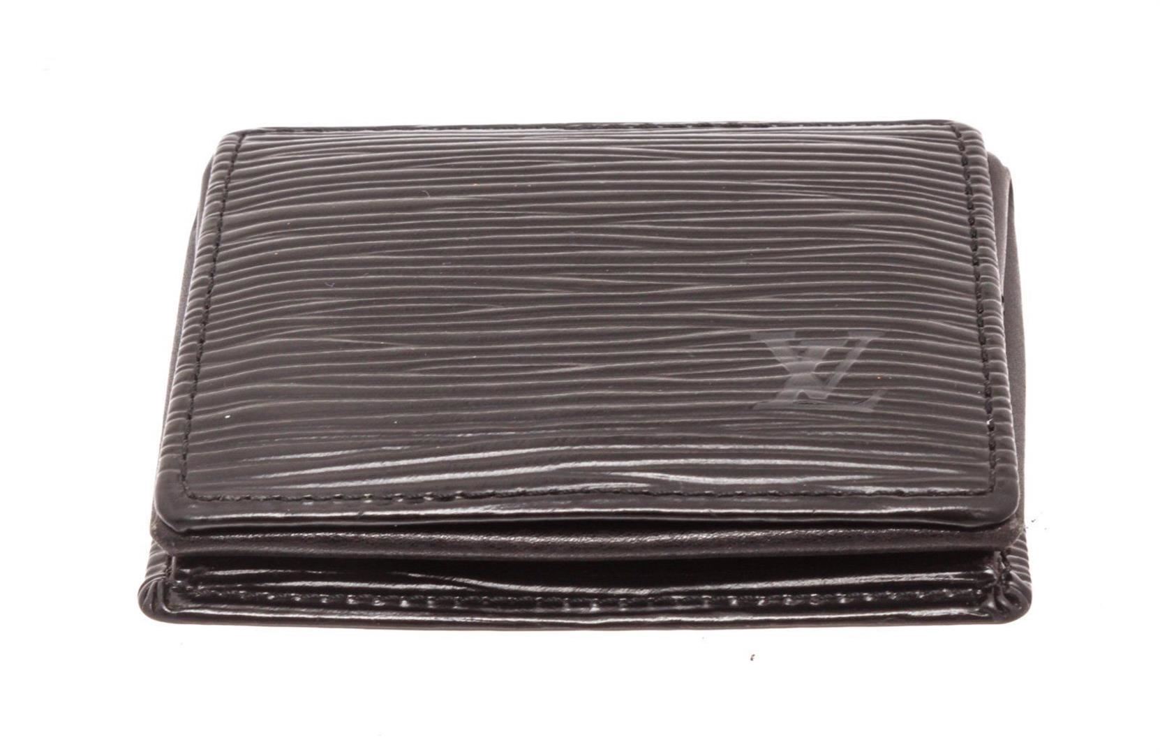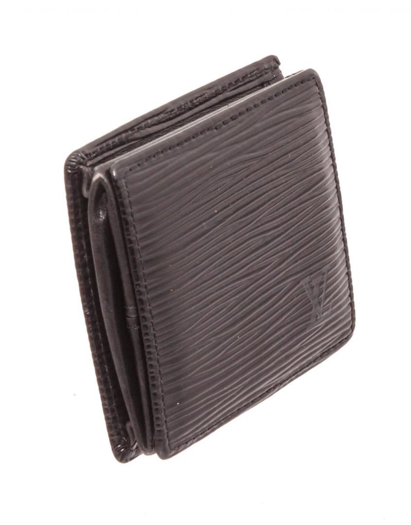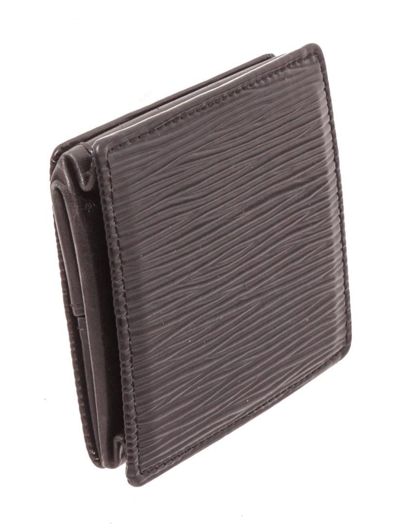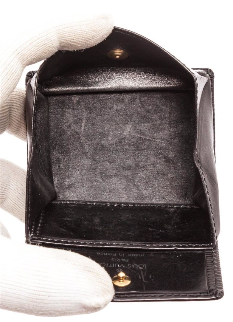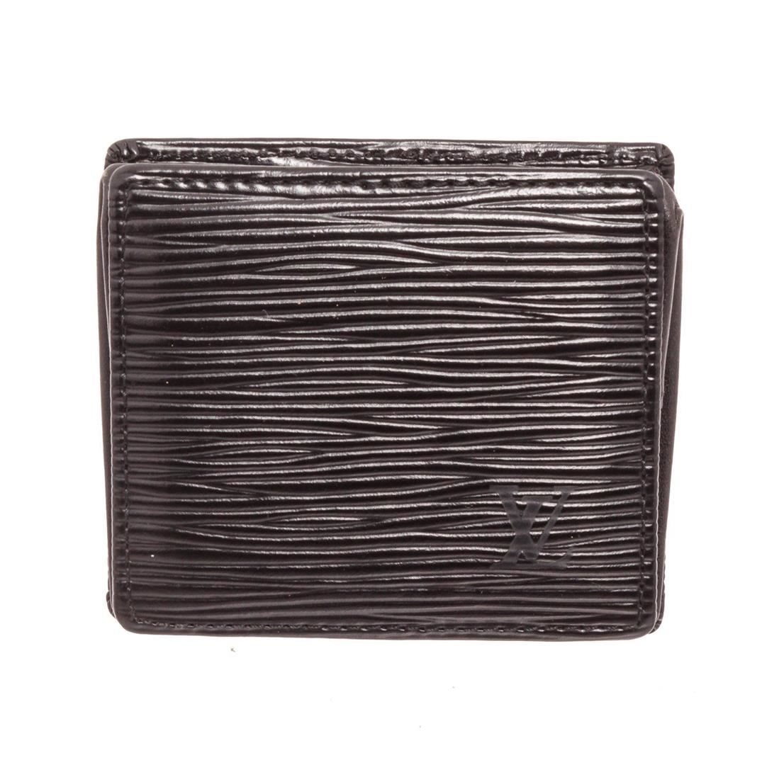 Louis Vuitton Black Epi Leather Boite Coin Case Wallet with silver-tone hardware, tonal taiga lining, one open coin compartment and overall snap button closure.