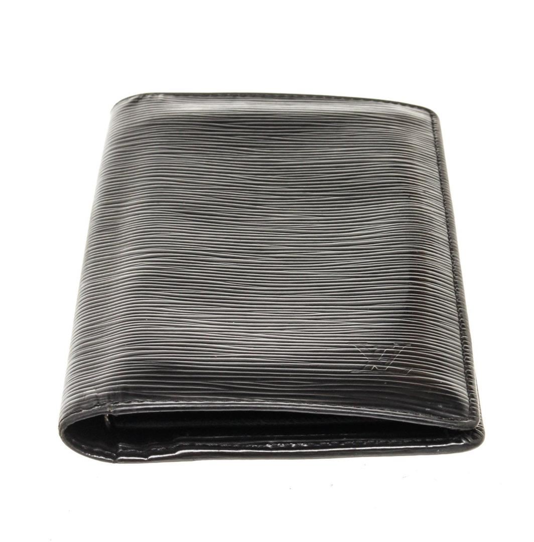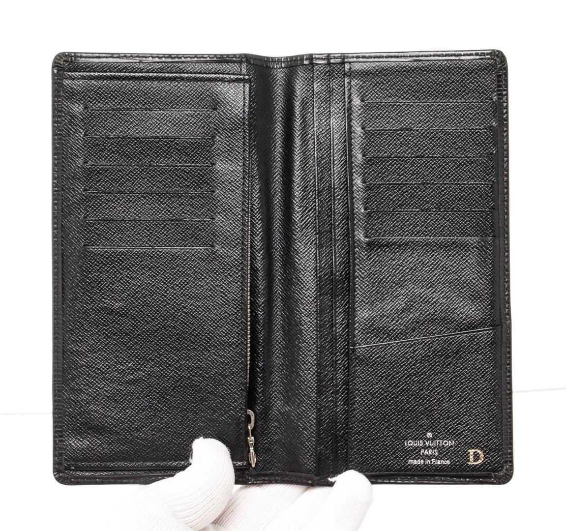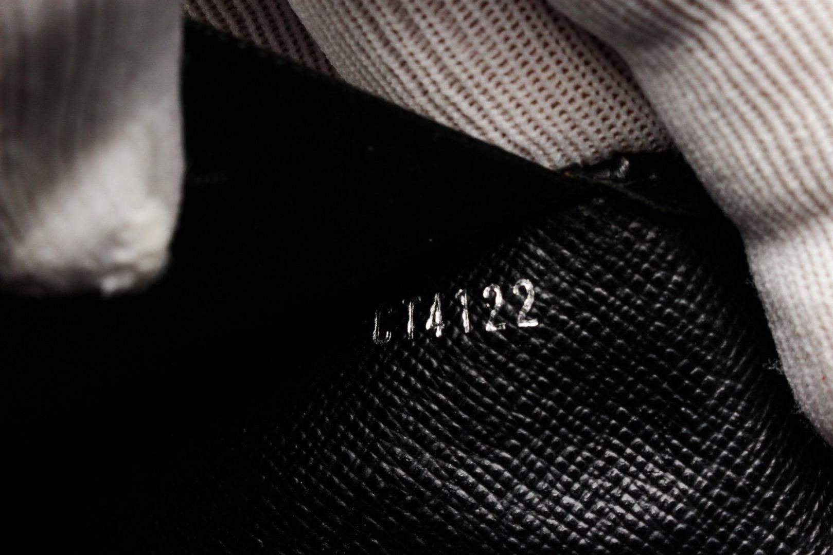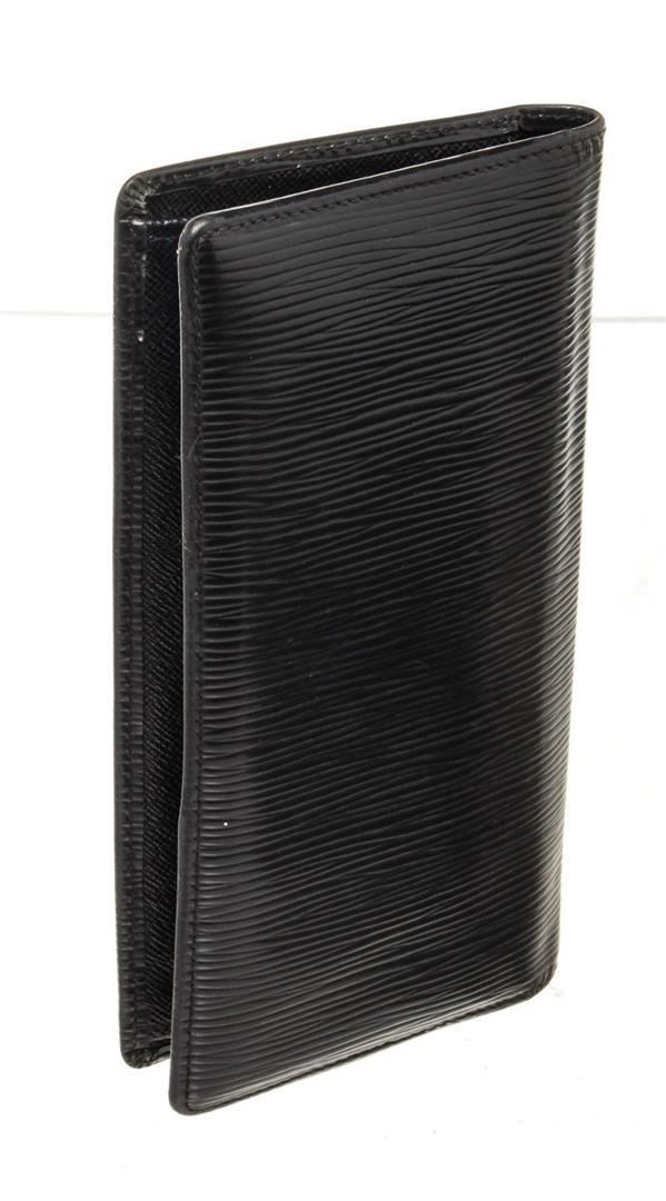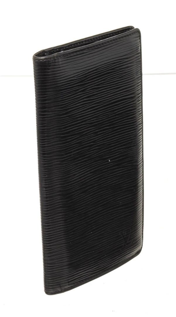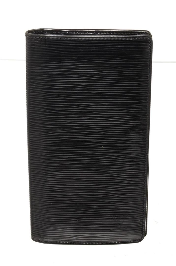 Louis Vuitton Black Epi Leather Brazza Wallet with epi leather, black leather lining, three interior compartments; one with zip closure, thirteen card slots, three bill compartments and bifold closure at front.