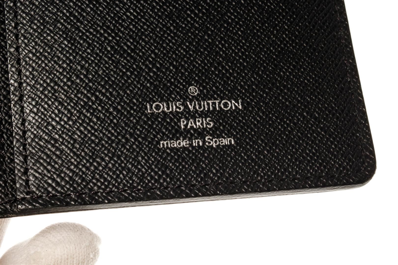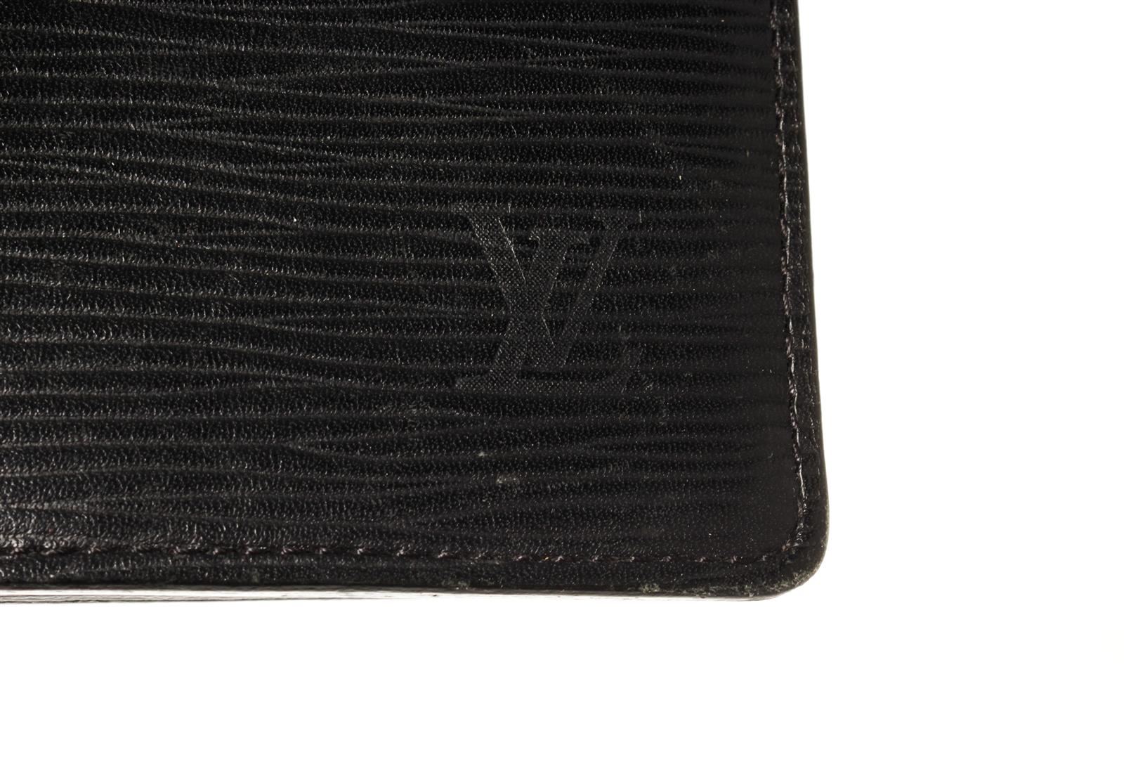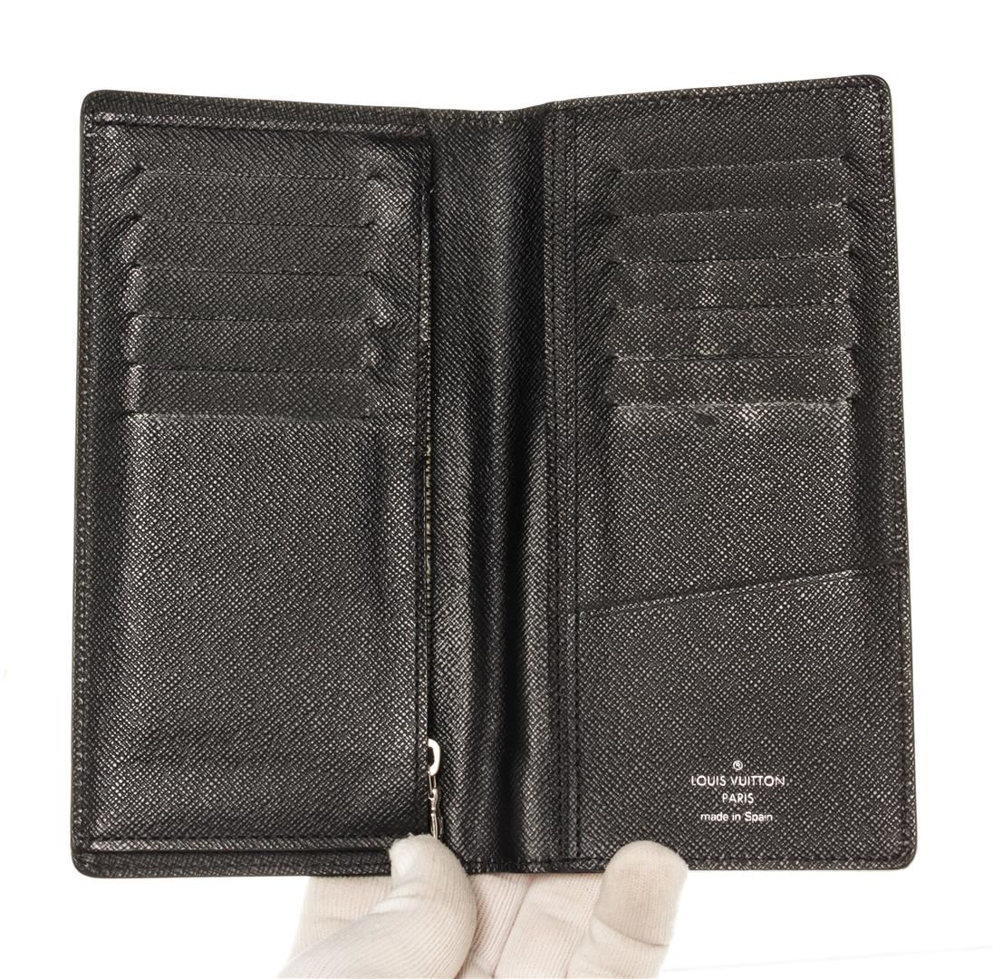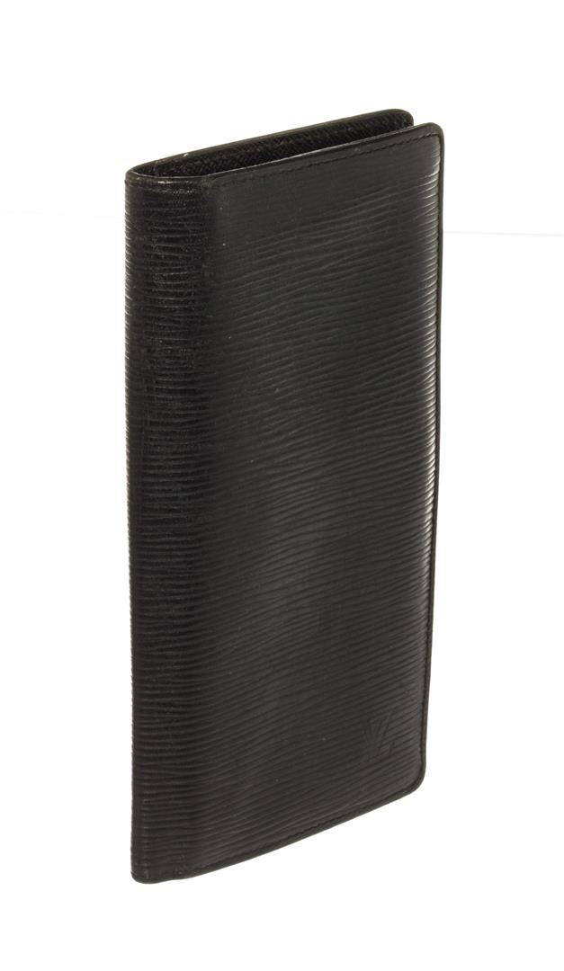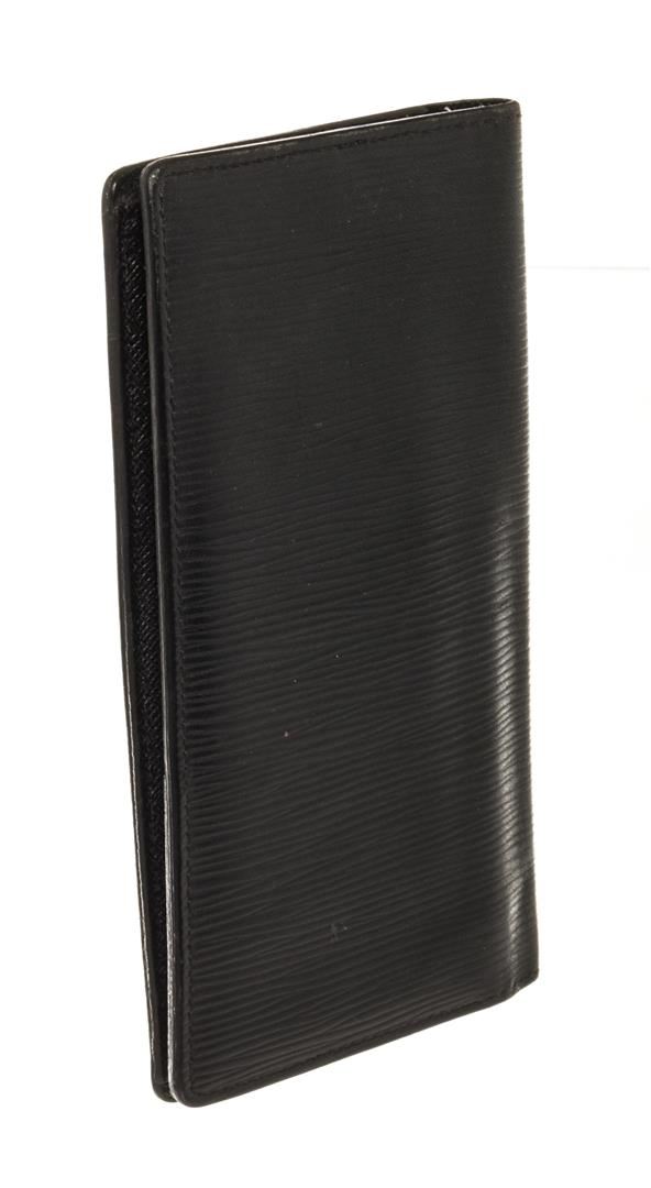 Louis Vuitton Black Epi Leather Brazza Wallet. All available information is listed in the description and shown in the photos. Louis Vuitton Black Epi Leather Brazza Wallet with black leather trim, black taiga leather lining, and silver-tone hardware.