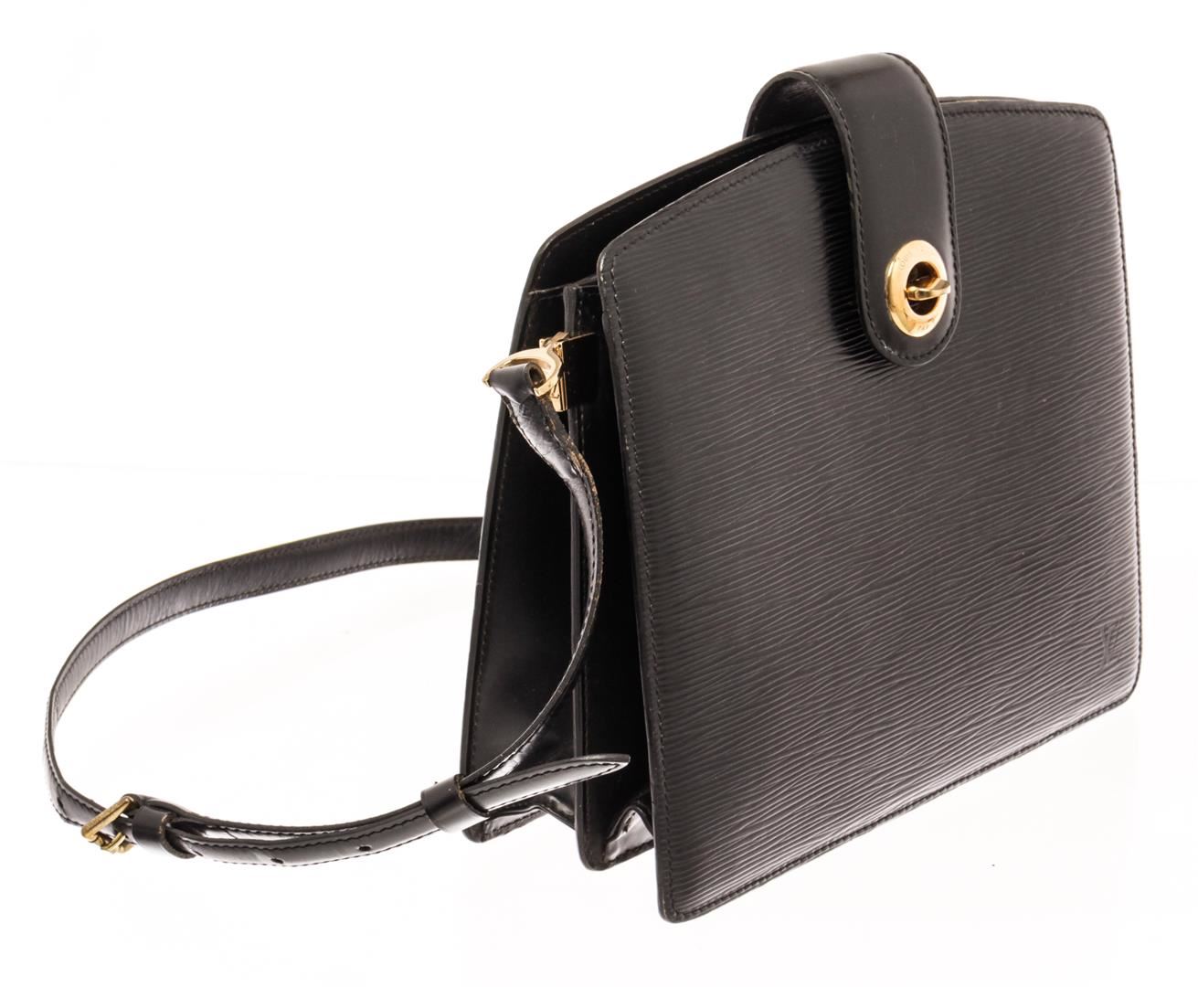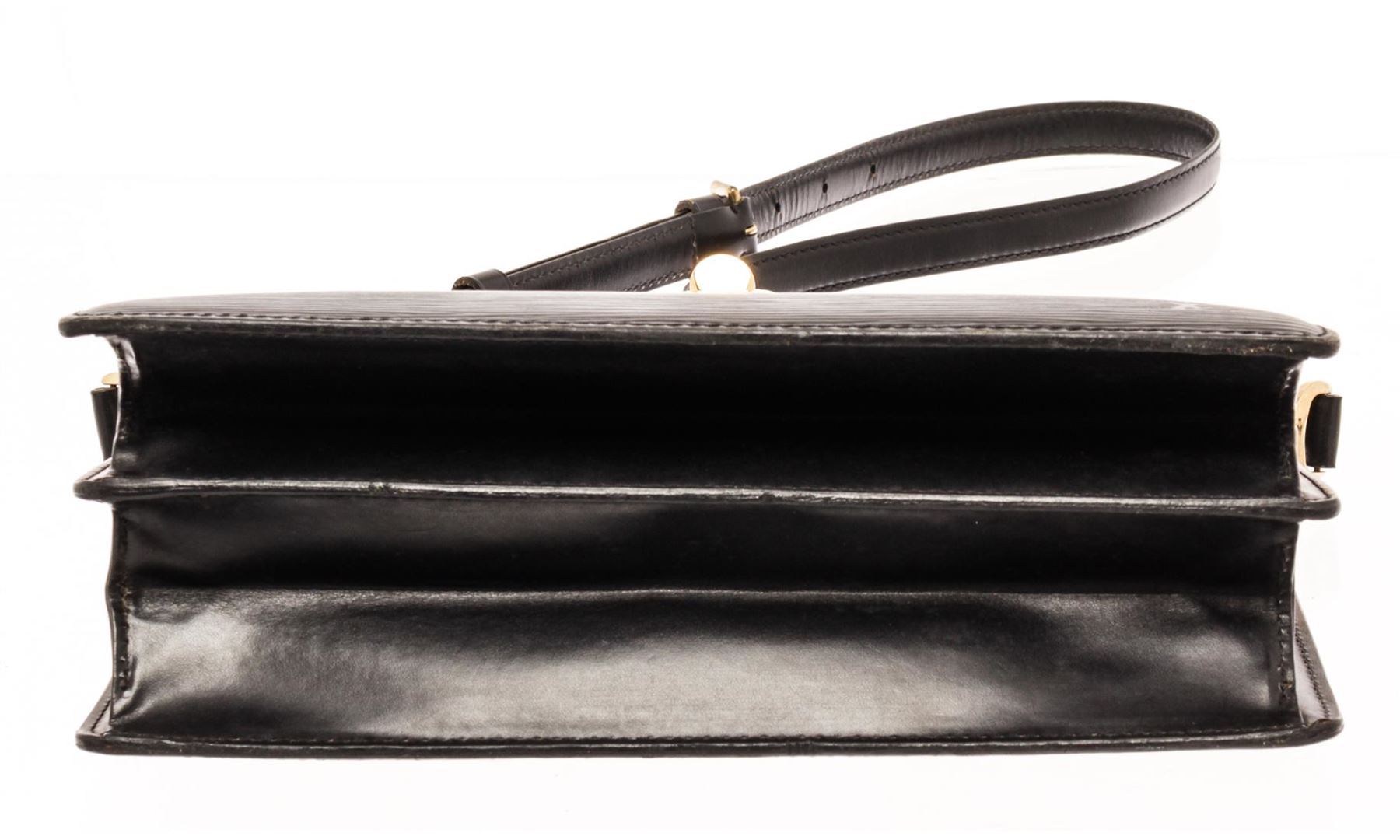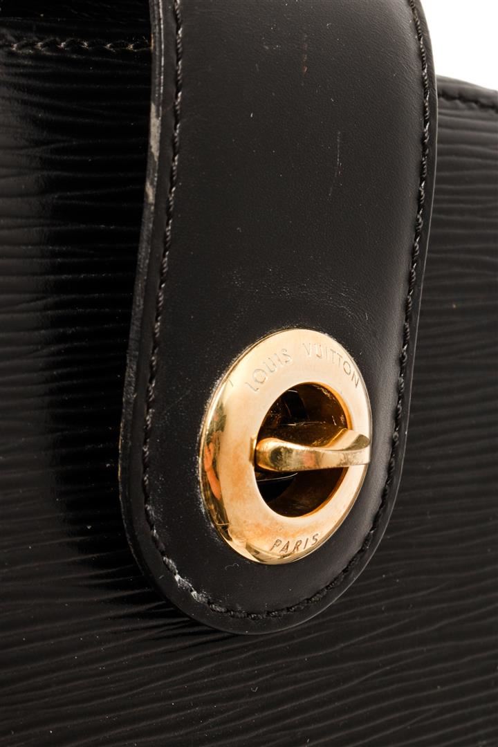 Louis Vuitton Black Epi Leather Capucines Shoulder Bag. All available information is listed in the description and shown in the photos. Louis Vuitton Black Epi Leather Capucines Shoulder Bag with black epi leather, brass hardware, single adjustable shoulder strap, leather lining & dual interior pockets, turn-lock closure at front. Height: 9" Width: 10.25" Depth: 2" Shoulder Strap Drop: 16" / Height: 22.86" Width: 26.03" Depth: 5.08" Shoulder Strap Drop: 40.64"