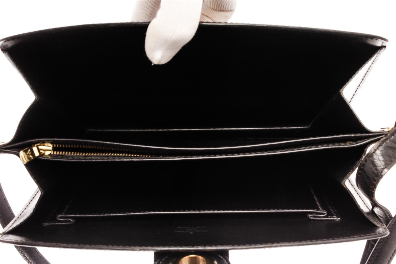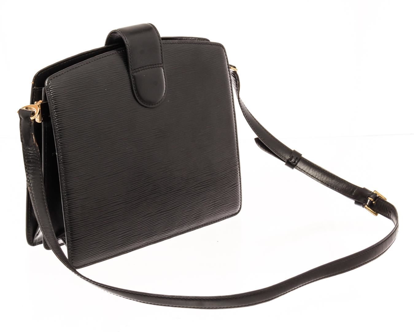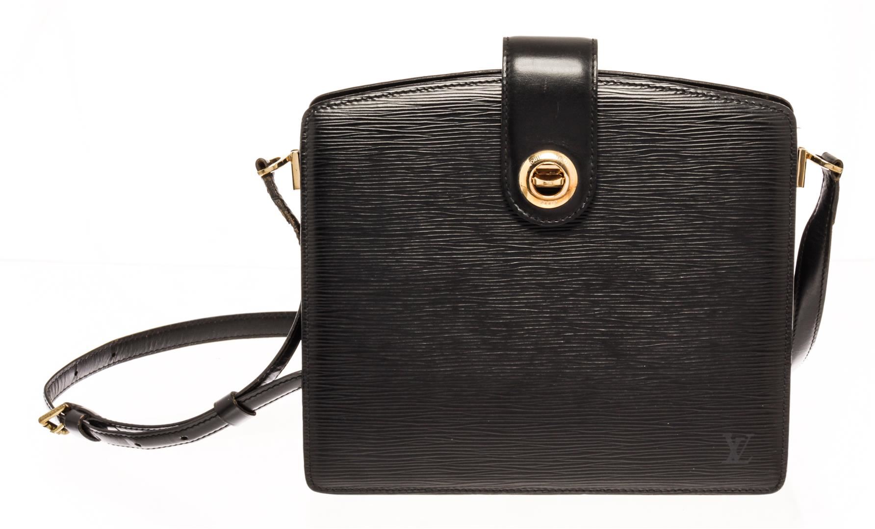 Louis Vuitton Black Epi Leather Capucines Shoulder Bag. All available information is listed in the description and shown in the photos. Louis Vuitton Black Epi Leather Capucines Shoulder Bag with black epi leather, brass hardware, single adjustable shoulder strap, leather lining & dual interior pockets, turn-lock closure at front. Height: 9" Width: 10.25" Depth: 2" Shoulder Strap Drop: 16" / Height: 22.86" Width: 26.03" Depth: 5.08" Shoulder Strap Drop: 40.64"