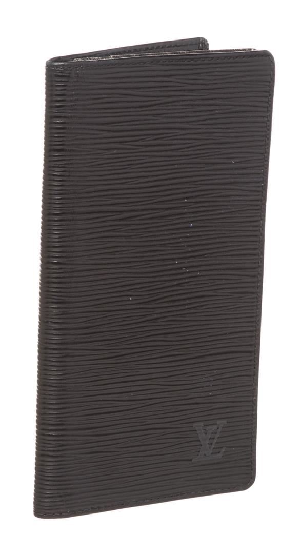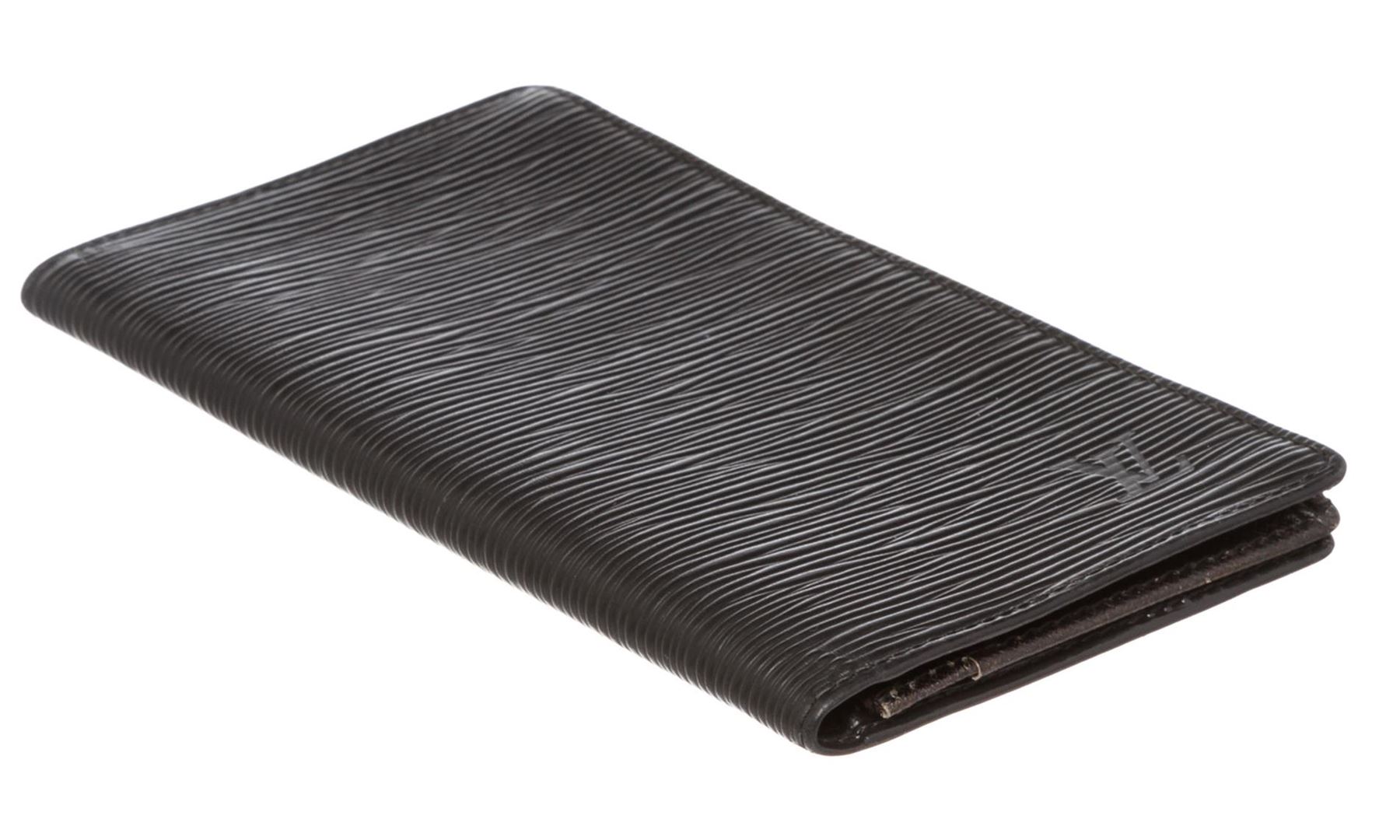 Louis Vuitton red Epi leather Checkbook Wallet with dual double side pockets and six card slots, bifold closure.