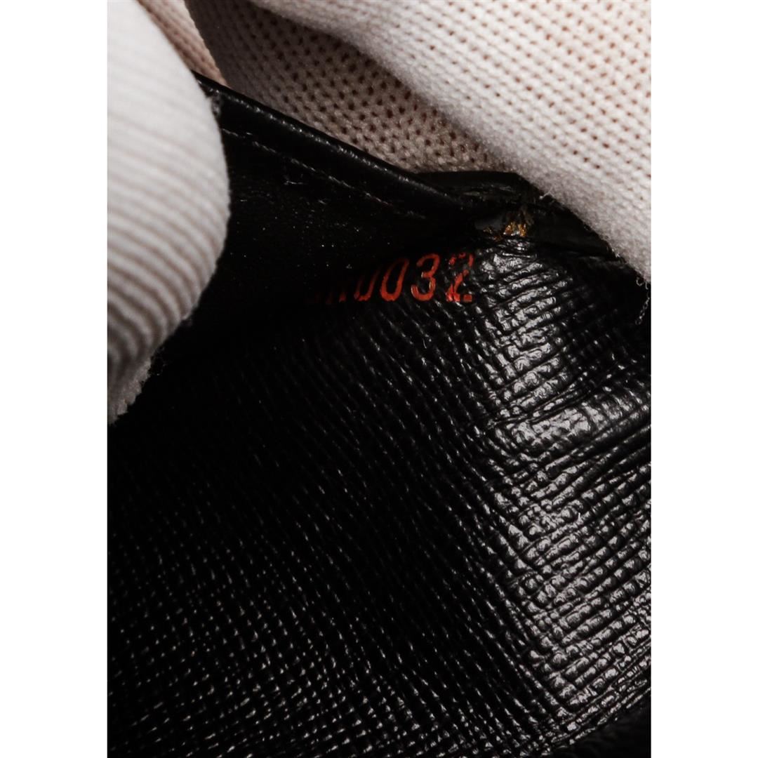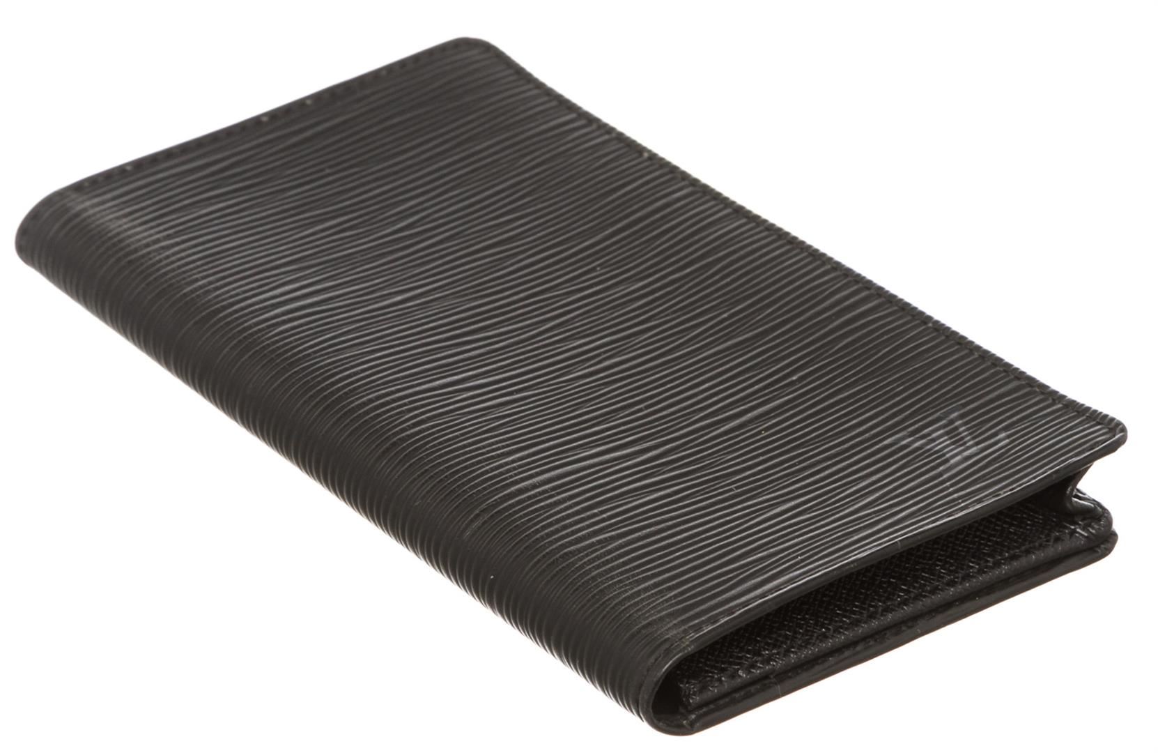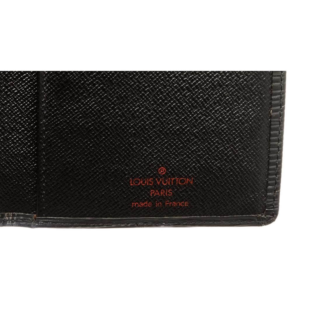 Louis Vuitton black Epi leather Checkbook Wallet with three side pockets and six card slots. Authentic.