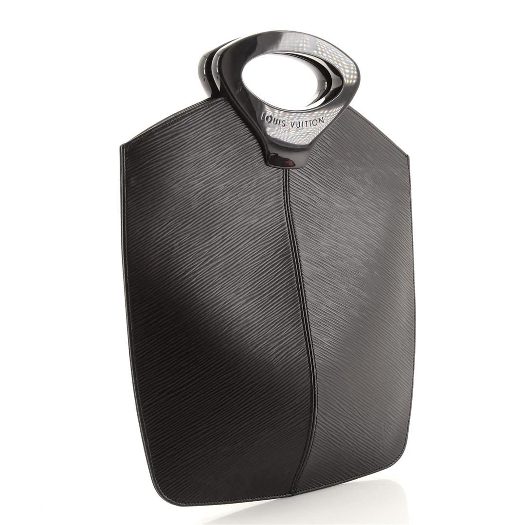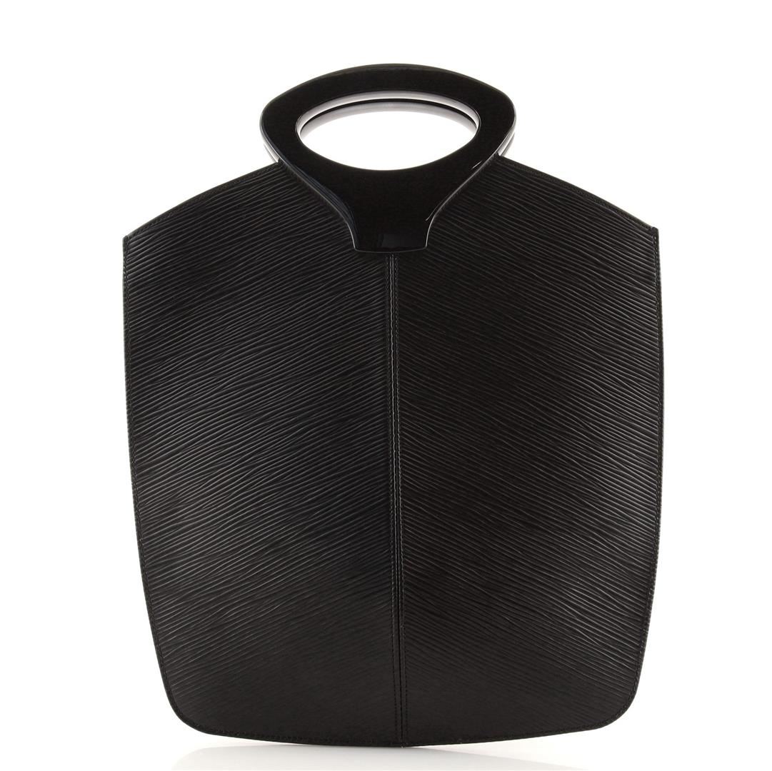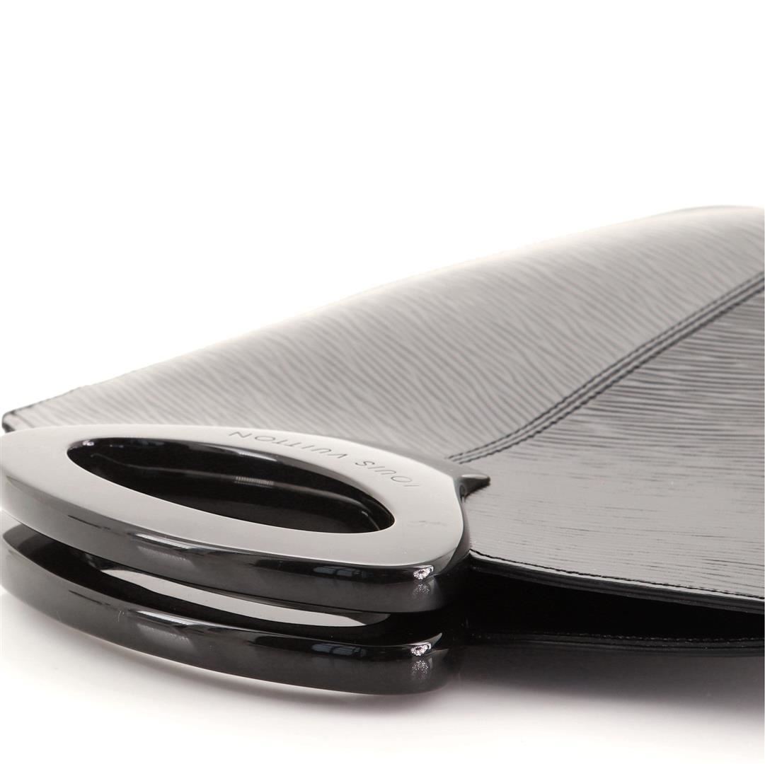 Louis Vuitton Black Epi Leather Demi Lune Handbag Condition Details: Odor in interior. Small indentations on front near base, scratches on handle. Minor wear and scuffs on interior leather trims, light wear in interior. Measurements: Height 11", Wid