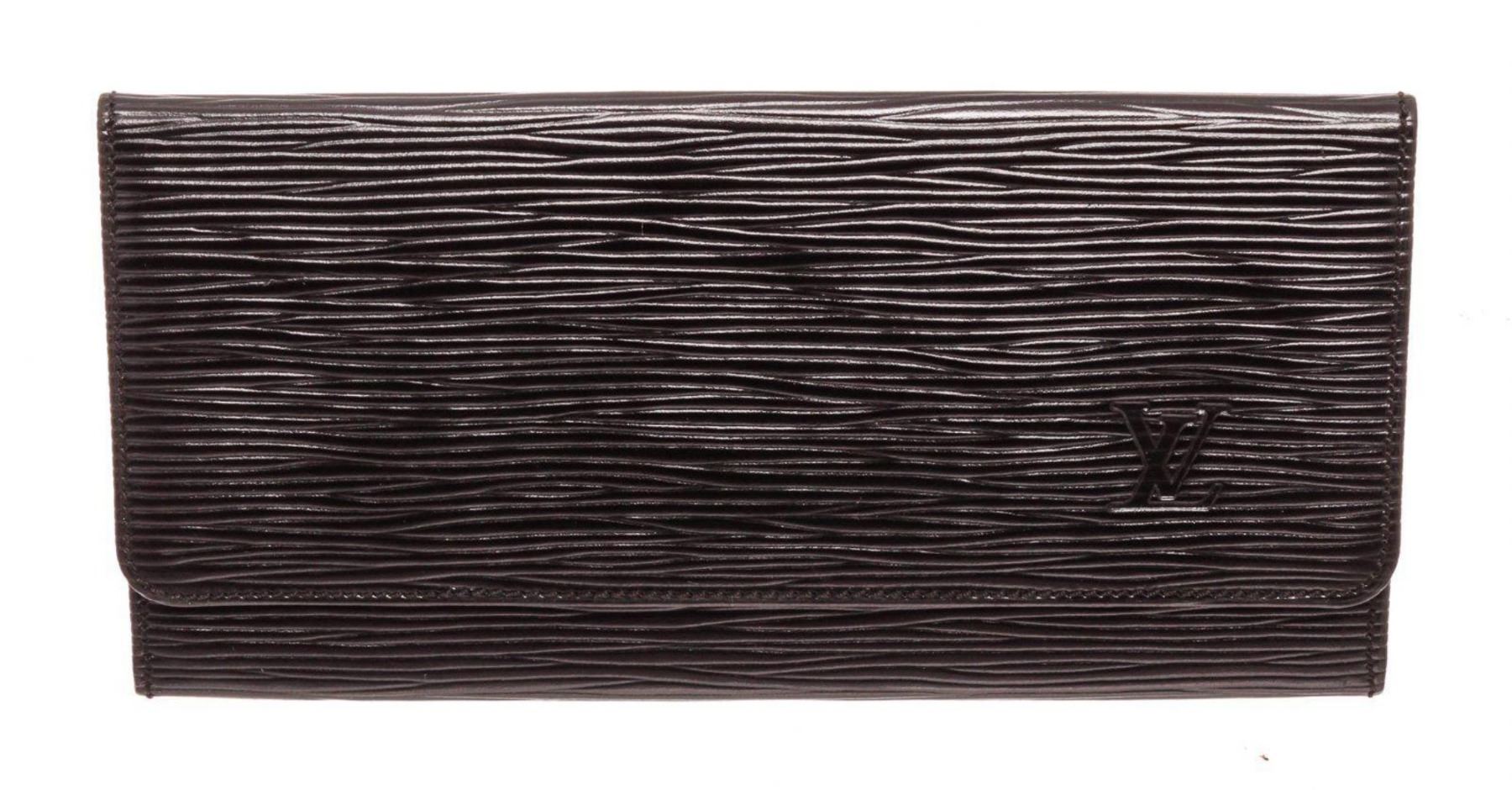 Louis Vuitton Black Epi Leather Flap Long Wallet with silver-tone hardware, trim tan vachetta leather, interior compartments pockets and bifold closure. Measurements: Length: 0.5 in / 1 cm Width: 7 in / 18 cm 4 in / 10 cmCONDITION: Pre-Owned Good overall, please see photographs for detail.