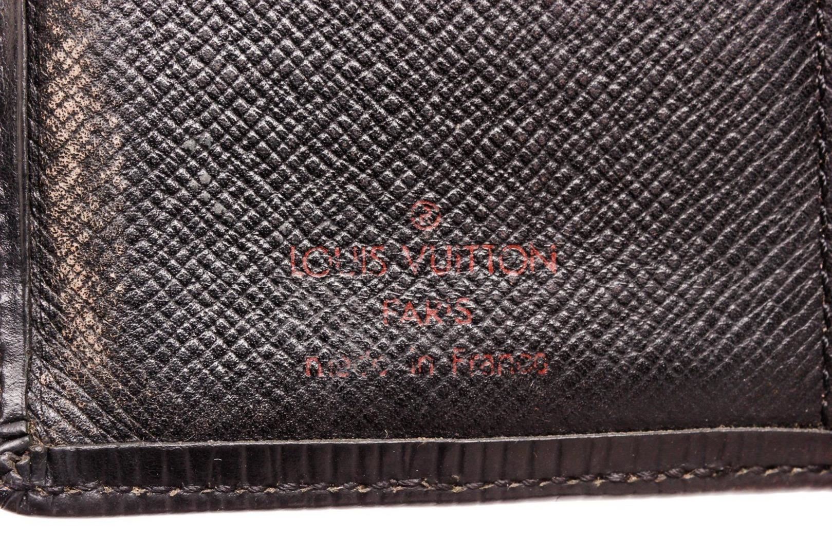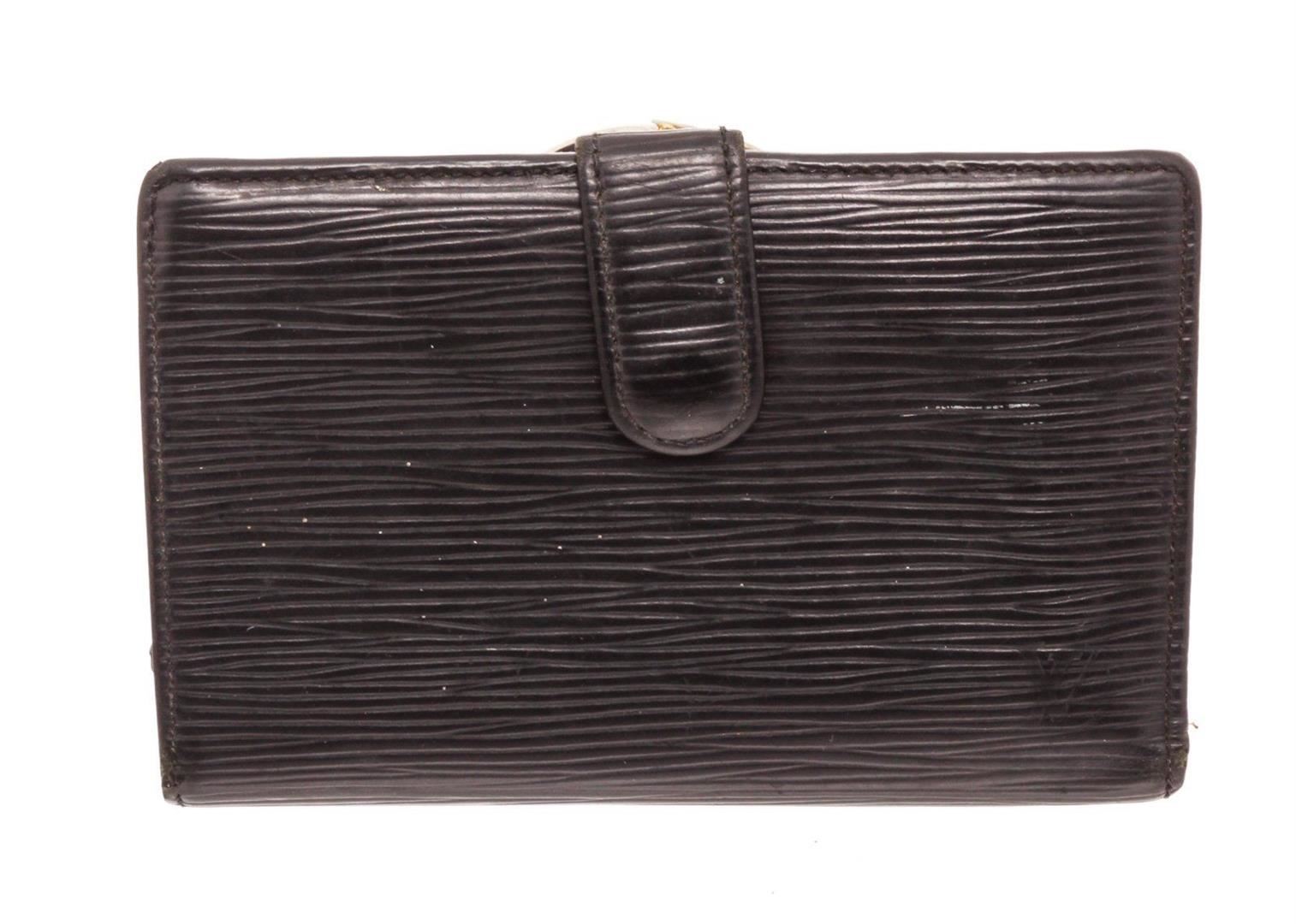 Louis Vuitton Black Epi Leather French Wallet with gold-tone hardware, black leather lining, and snap closure.