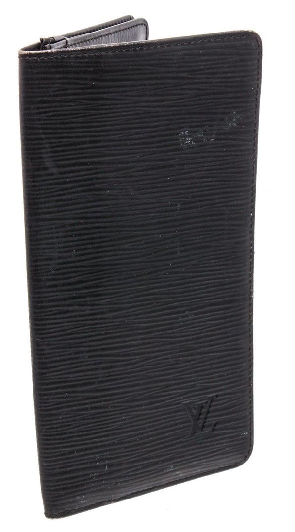 Black Epi leather Louis Vuitton Card Holder with embossed logo at front face, six card slot, black leather lining, six card slots, four bill compartments and bifold closure. Measurements: Length: 4 in / 10 cm Width: 25 in / 64 cm 7 in / 18 cm Condition: Pre-Owned Good overall, please see photographs for detail.