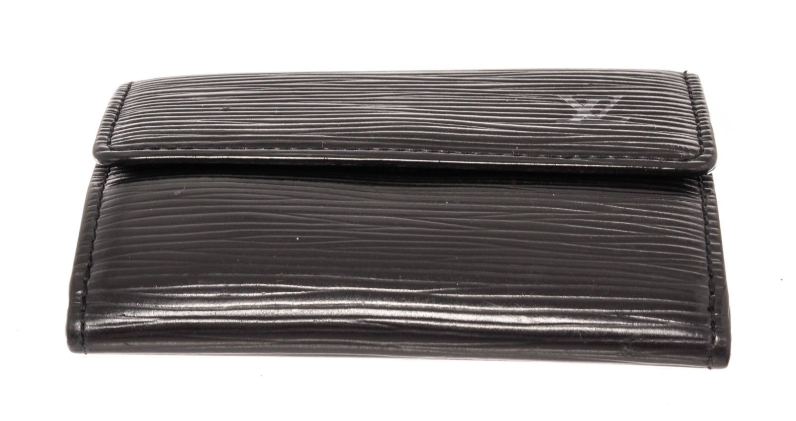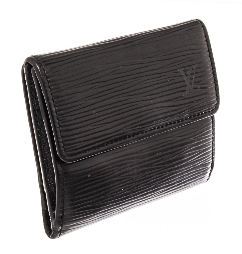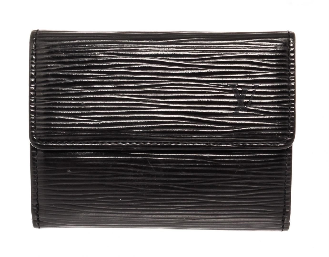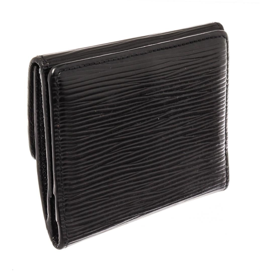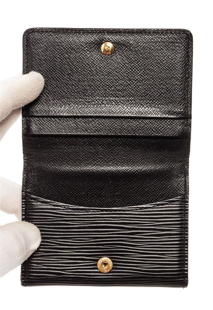Louis Vuitton Black Epi Leather Ludlow Cardholder Wallet with material epi leather, gold-tone hardware, interior slip pockets and snap closure.