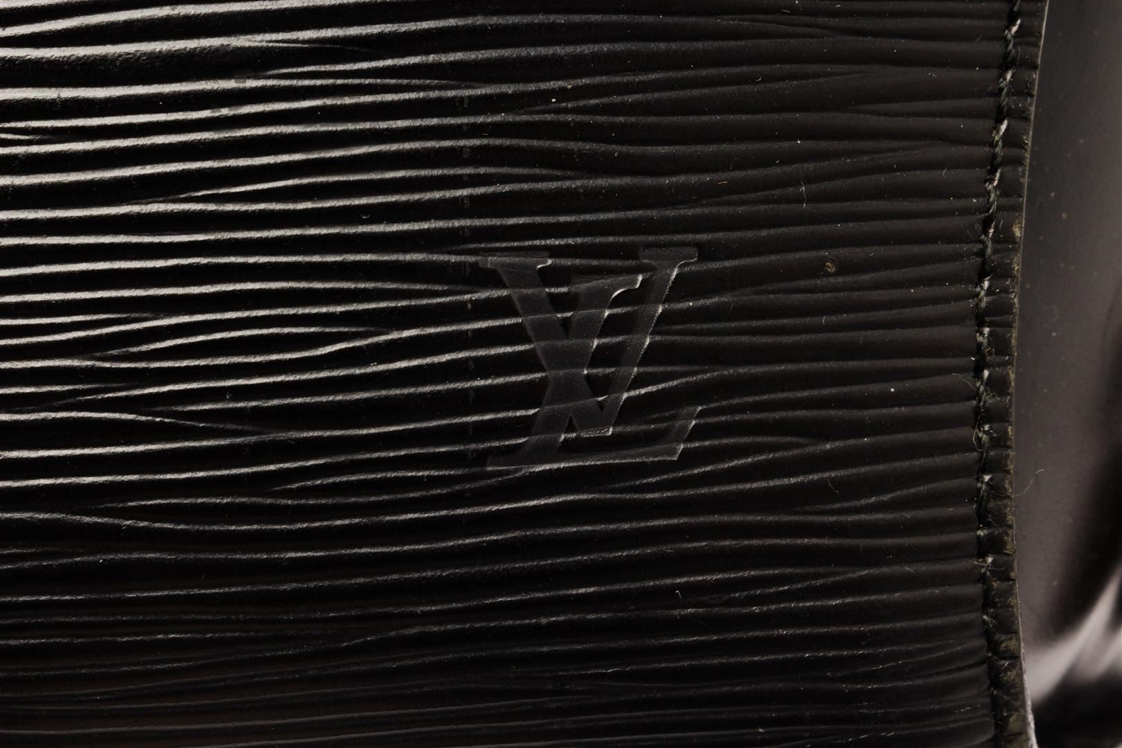 Louis Vuitton Black Epi Leather Mabillon Backpack. All available information is listed in the description and shown in the photos. Louis Vuitton Black Epi Leather Mabillon Backpack with one exterior pocket, adjustable shoulder straps, grey suede interior, one interior pocket and gold-tone zipper closure with lock and key. Length 11", Width 9", Depth 3", Shoulder Strap 28" / 27.94 x 22.86 x 7.62 Cm
