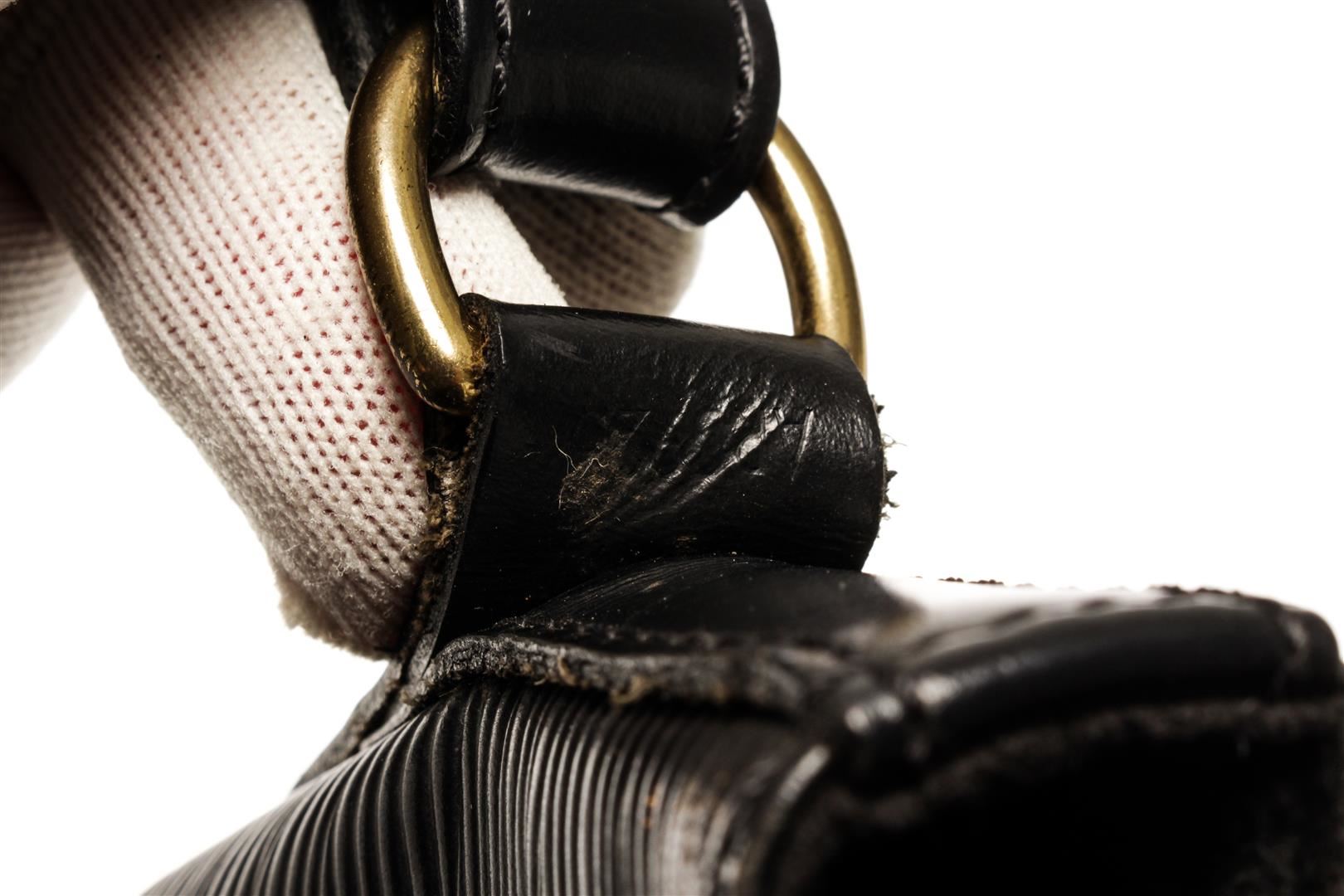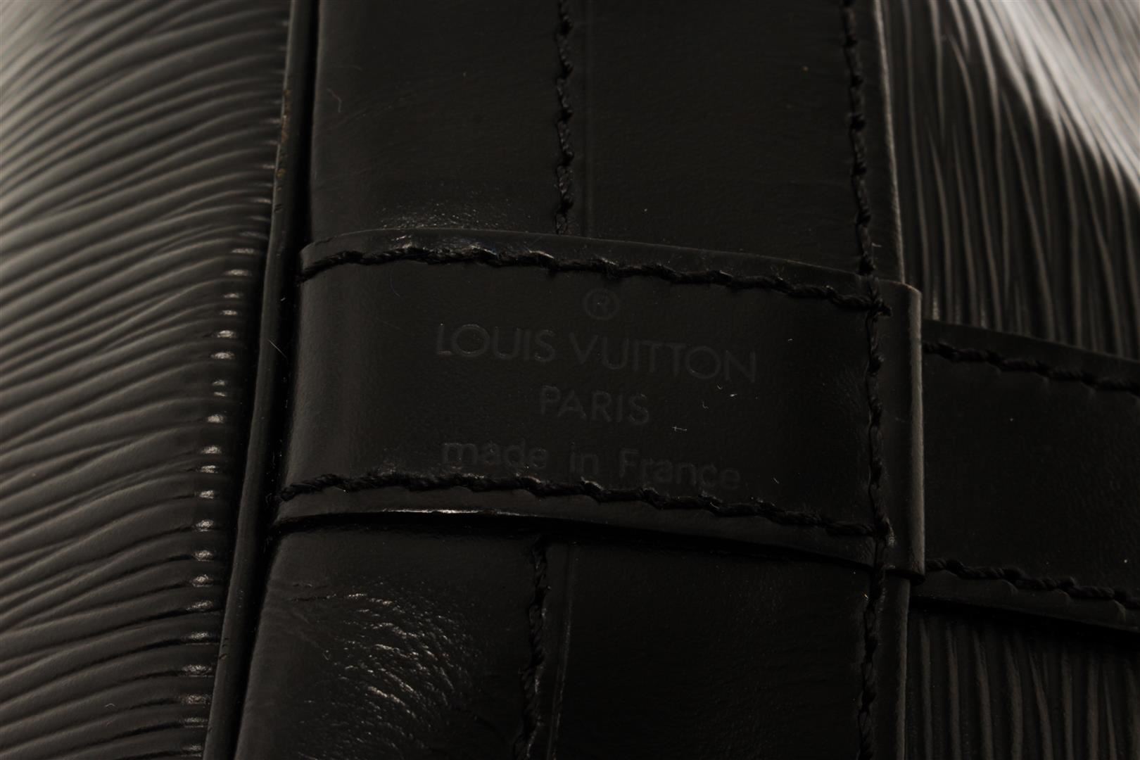 One Louis Vuitton Black Epi Leather Noe. Item is sold AS-IS. All available information is listed in the description and shown in the photo. Louis Vuitton Black Epi Leather Noe with adjustable strap, suede lining, drawstring closure, gold tone hardware.