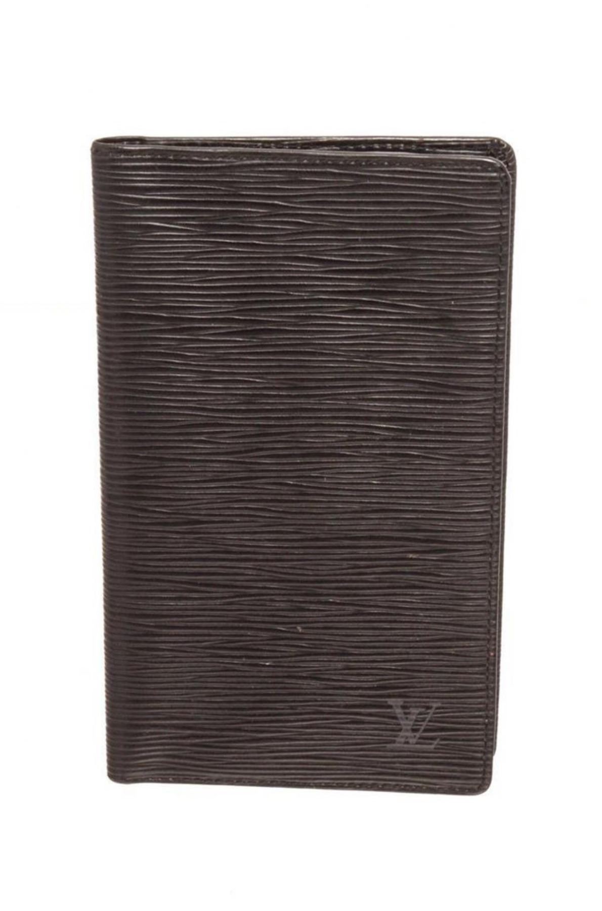 Louis Vuitton Black Epi Leather Passport Cover Wallet with silver-tone hardware, interior three pockets, canvas lining, and bifold closure. Measurements: Length: 4.2 in / 11 cm Width: 0.4 in / 1 cm 7.3 in / 19 cmCONDITION: Pre-Owned Good overall, please see photographs for detail.