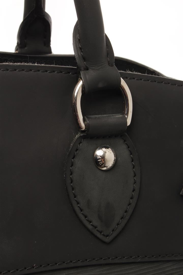One Louis Vuitton Black Epi Leather Passy Handbag. Item is sold AS-IS. All available information is listed in the description and shown in the photo. louis vuitton black leather passy handbag with black epi leather, silver-tone hardware, rolled handles, canvas lining & three interior pockets, clasp closure at top. Height: 10.25", Width: 15", Depth: 5.5" / 26.03 x 38.1 x 13.97 cm