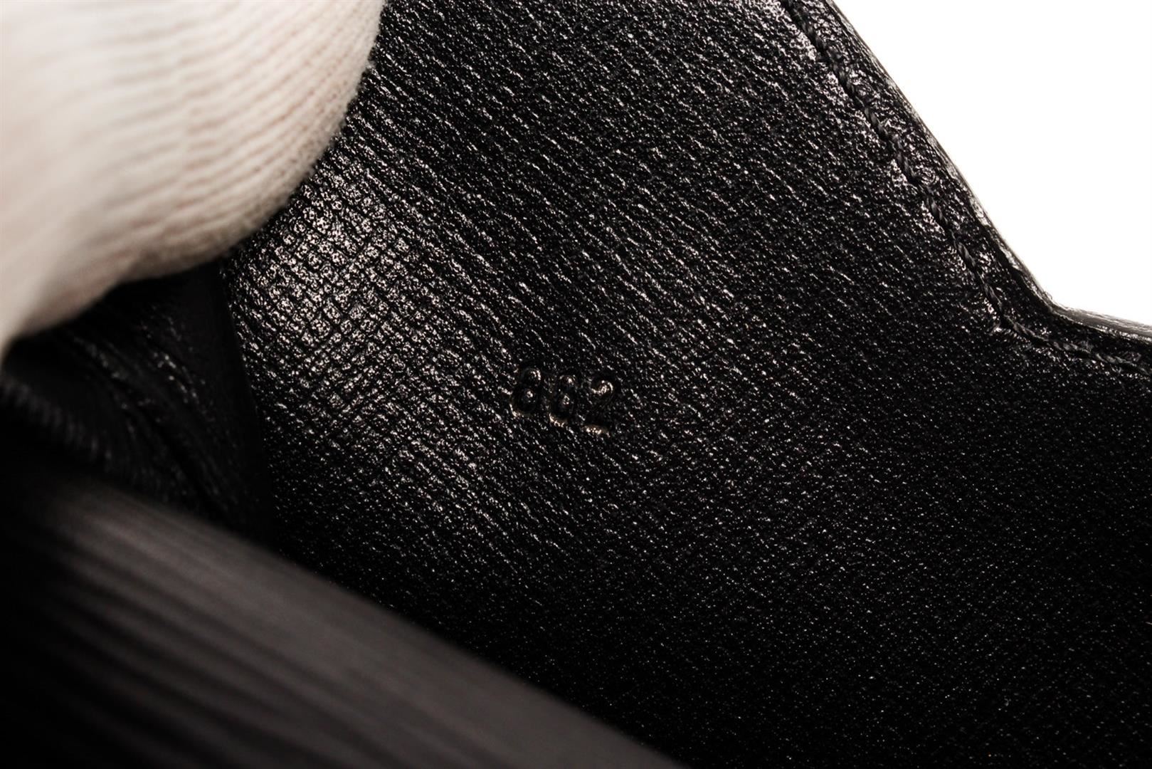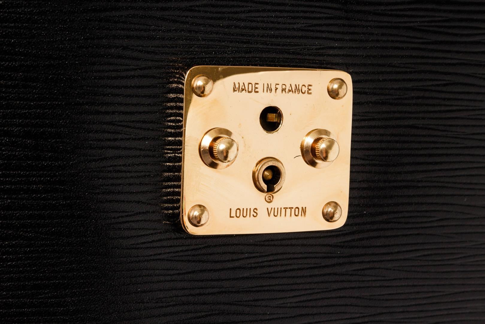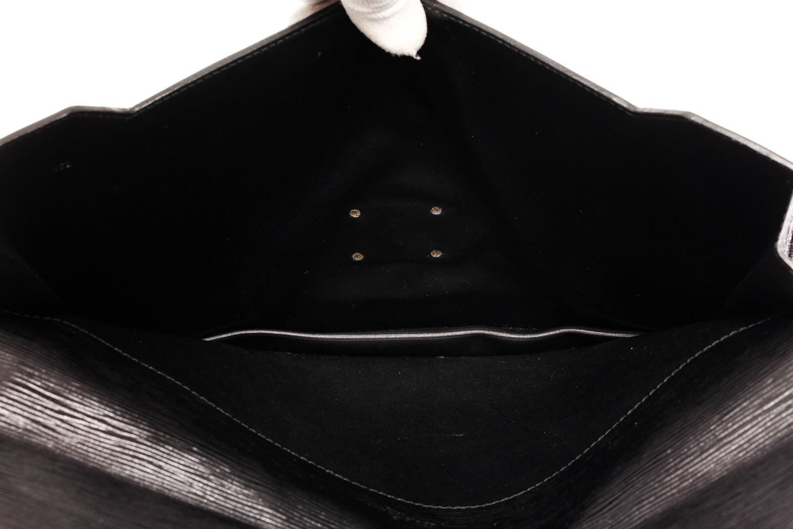 Louis Vuitton Black Epi Leather Porte Document Briefcases with epi leather gold-tone hardware, trim tan vachetta leather, interior slip pocket and push lock closure.