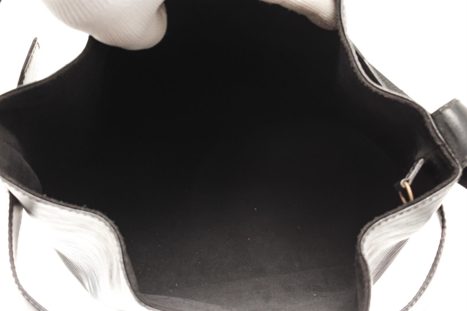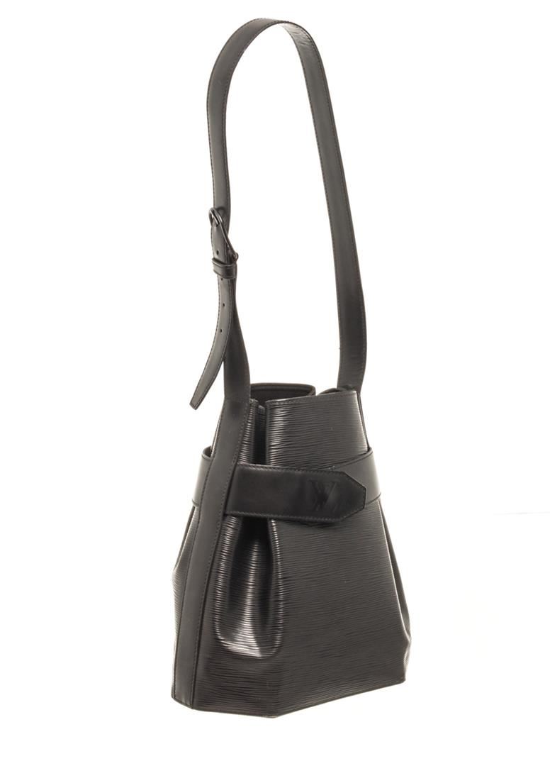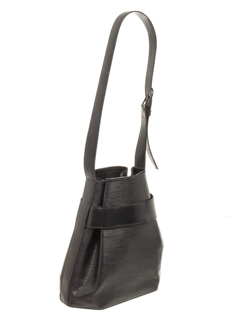 One Louis Vuitton Black Epi Leather Sac Depaule Shoulder Bag. Item is sold AS-IS. All available information is listed in the description and shown in the photo. louis vuitton black epi leather sac depaule shoulder bag with a leather strap around the top of the bag secured with a stud. it is carried on the shoulder with its adjustable shoulder strap. inside has alkantra lining with a d-ring. Height: 5.7" Width: 11.2" Depth: 10.2", Handle Drop: / 14.48 x 28.45 x 25.91 Cm