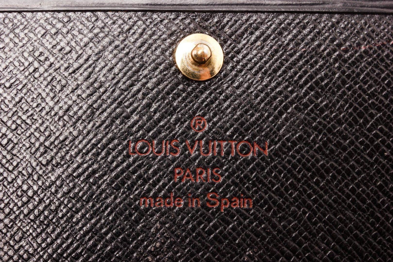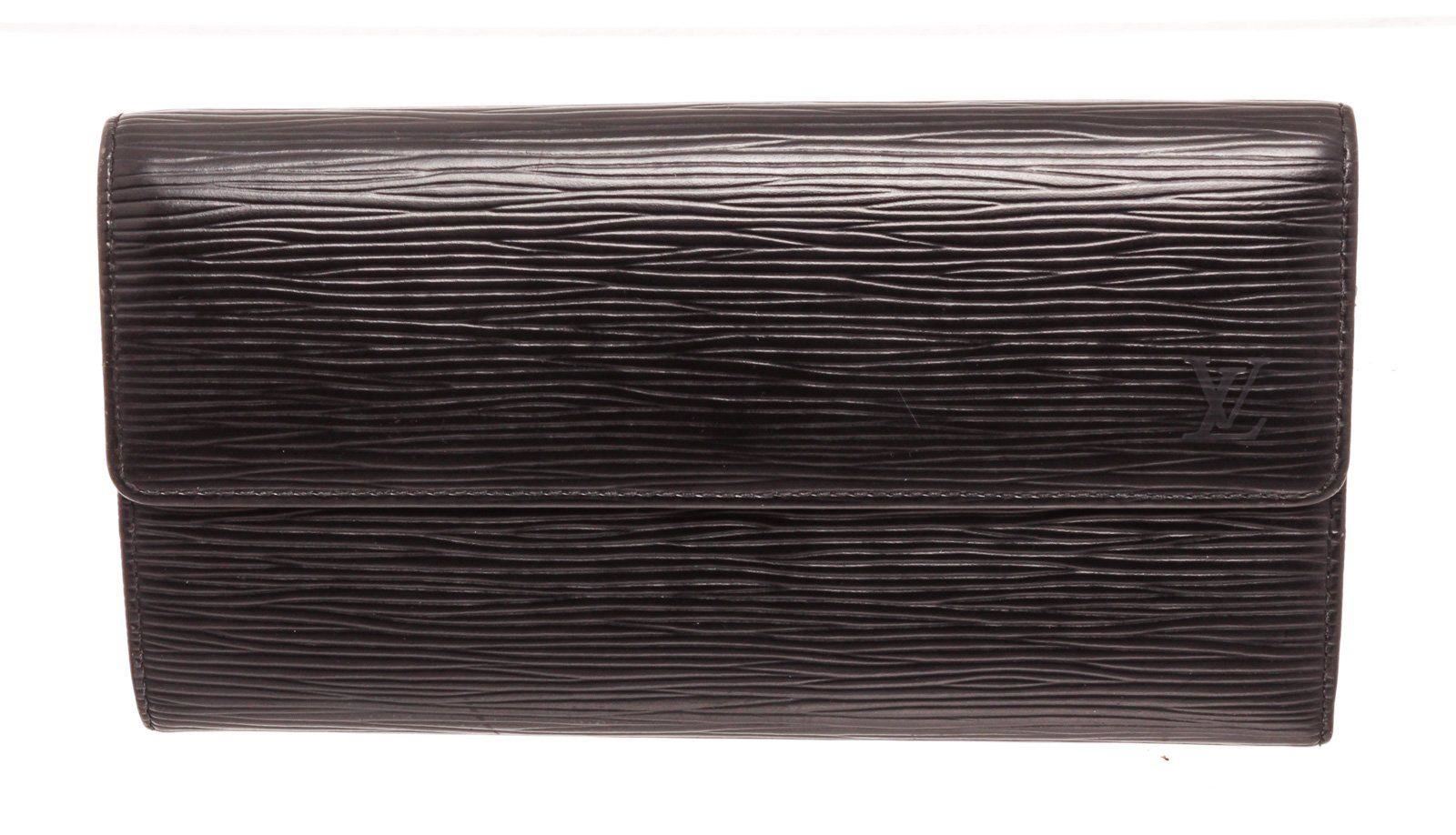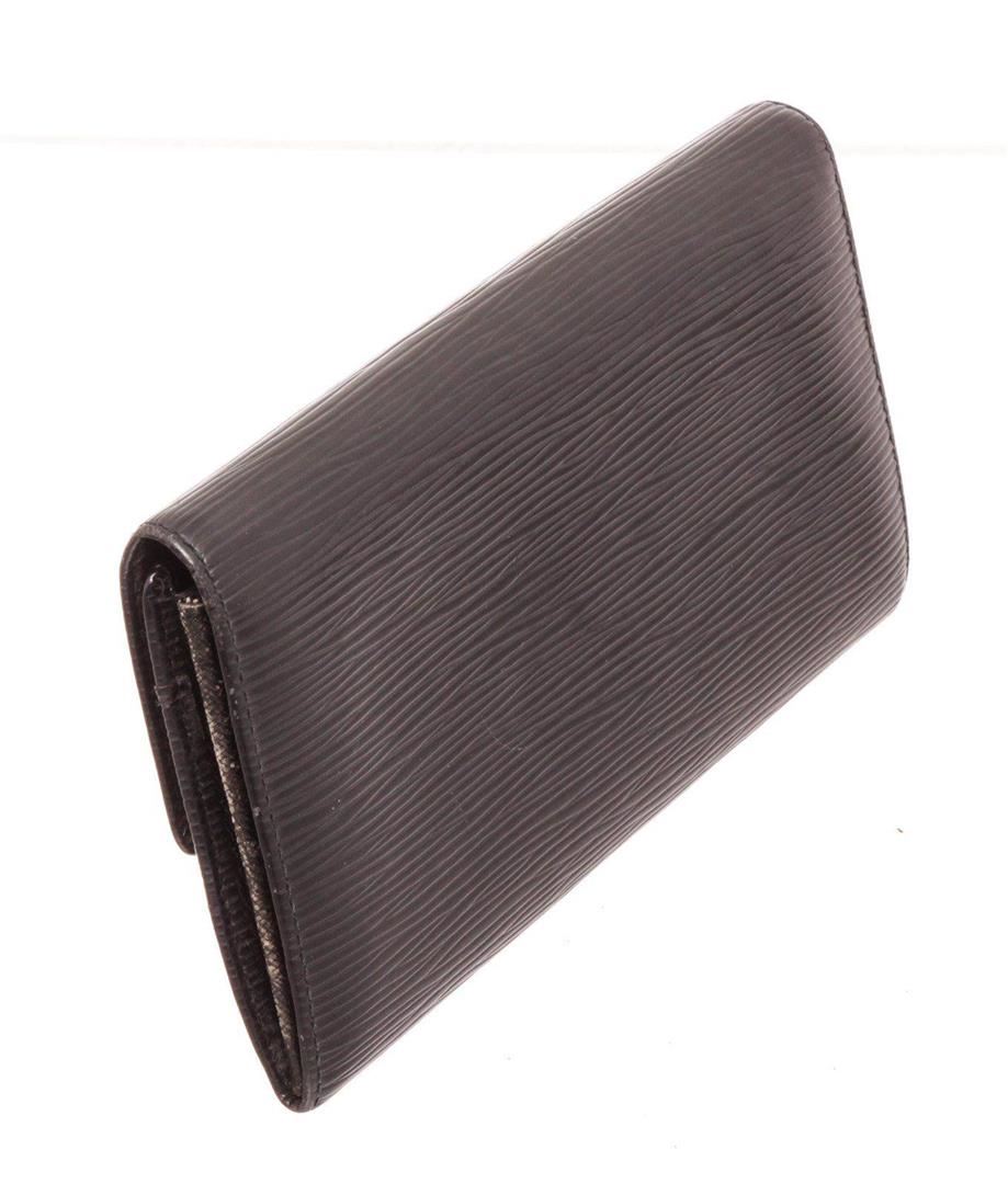 Louis Vuitton Black Epi Leather Sarah Wallet with silver-tone hardware, leather lining, interior pockets, ten card slots, and snap closure at front. Measurements: Length: 1 in / 3 cm Width: 7.5 in / 19 cm 4 in / 10 cm Condition: Pre-Owned Good overall, please see photographs for detail.