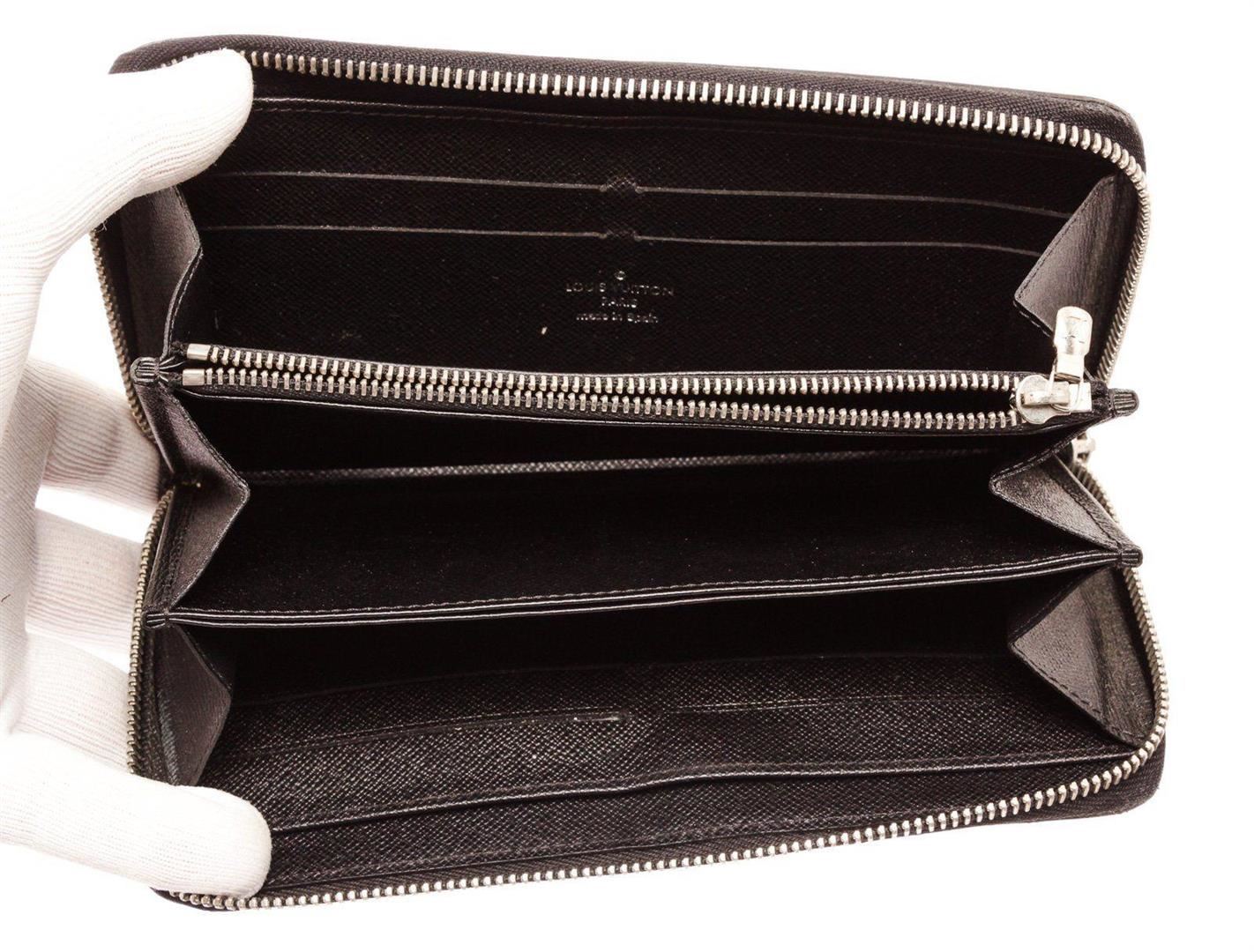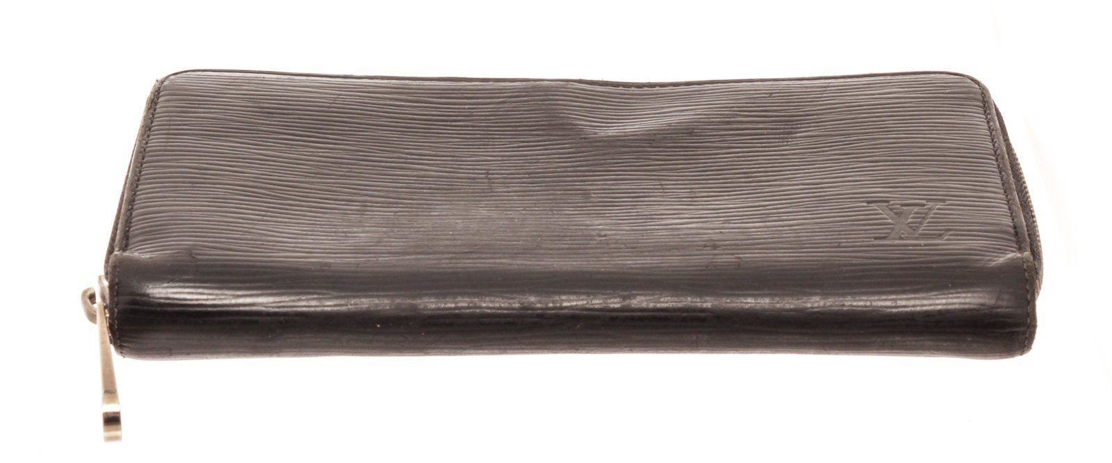 Louis Vuitton Black Epi Leather Zippy Wallet with material epi leather, gold-tone hardware, interior three compartments pockets and zipper closure. Measurements: Length 1 in / 3 cm Width 7.75 in / 20 cm Height 4 in / 10 cm Condition: Pre-Owned Good overall, please see photographs for detail.