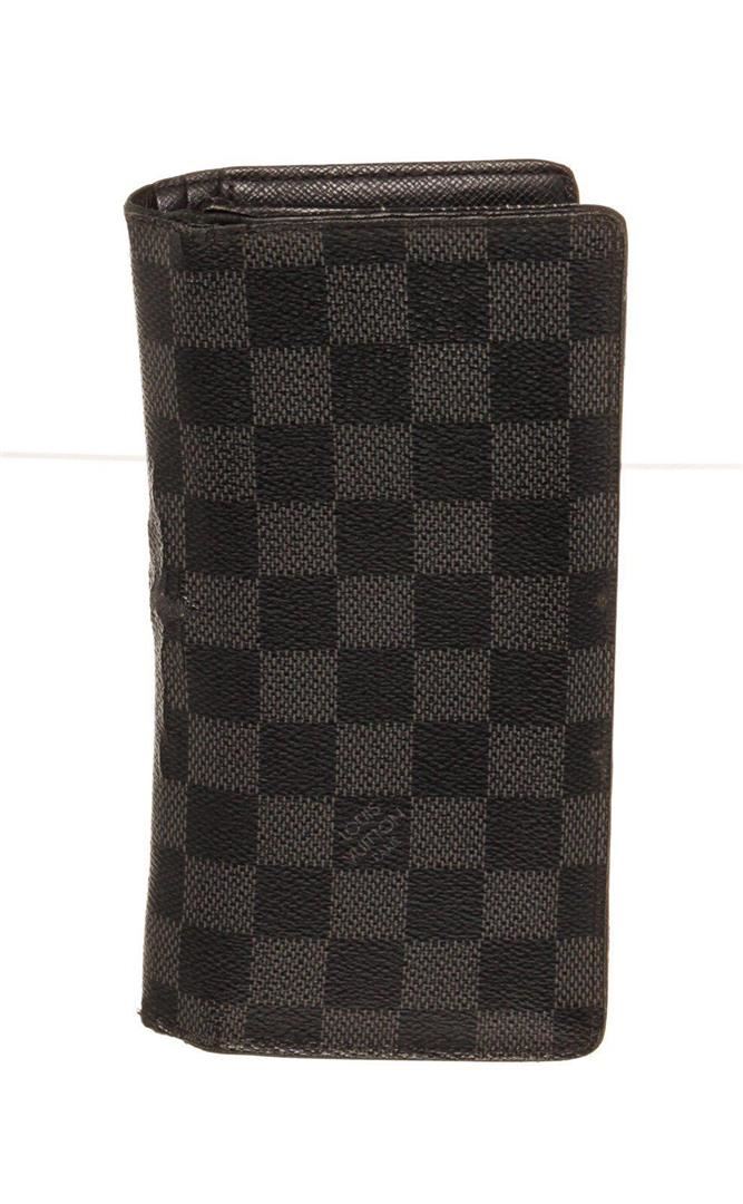 Louis Vuitton Black Graphite Damier Canvas Brazza Wallet with silver-tone hardware, black leather lining, three interior compartments; one with zip closure, thirteen card slots, three bill compartments and bifold closure at front.