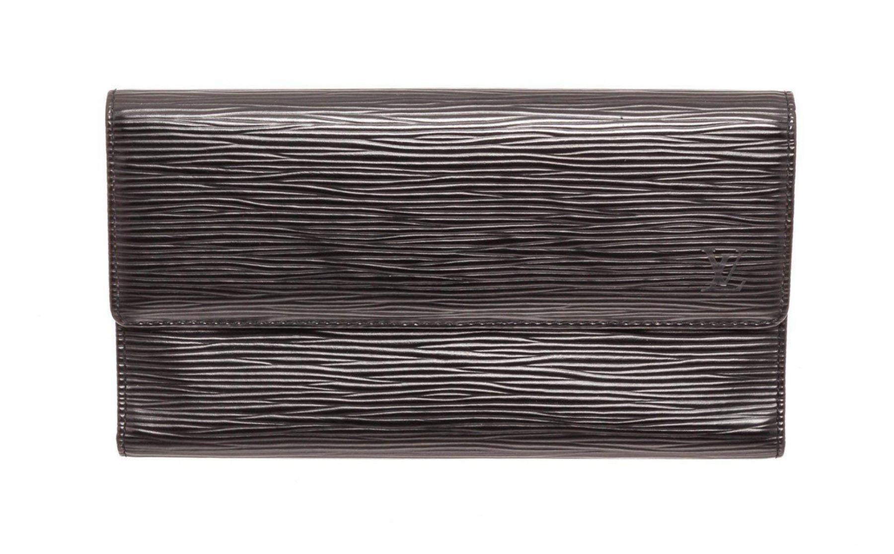 Louis Vuitton Black International Wallet with gold-tone hardware, trim tan vachetta leather, interior three compartments pocket and snap closure. Measurements: Length: 1 in / 3 cm Width: 4.25 in / 11 cm 7.5 in / 19 cmCONDITION: Pre-Owned Good overall, please see photographs for detail.