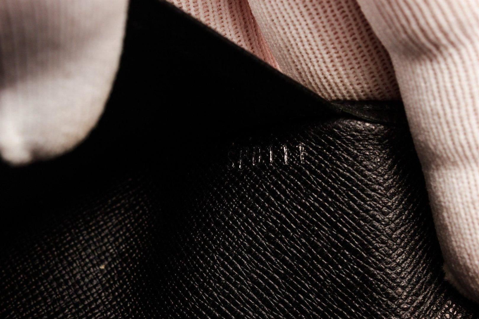 Louis Vuitton Black Leather Brazza Wallet with material leather, gold-tone hardware, trim tan vachetta leather, interior card holder pocket, leatherlining and flap closure. Measurements: Length 13 in / 33 cm Width 17.5 in / 44 cm Height 7.25 in / 18 cm Condition: Pre-Owned Good overall, please see photographs for detail.