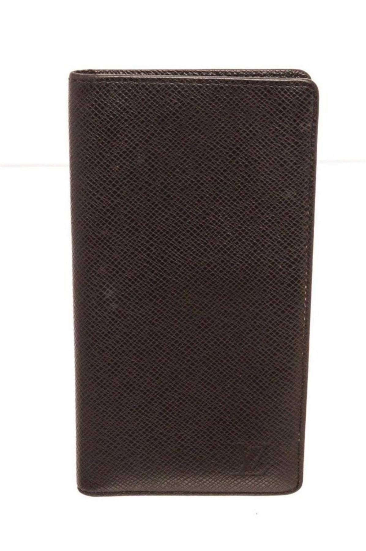 Louis Vuitton Black Leather Canvas Long Card Wallet. Louis Vuitton Black Leather Canvas Long Card Wallet with material Leather, gold-tone hardware, interior card holder pockets, trim tan vachetta leather, flap closure. MEASUREMENTS: Length 6.5 in / 17