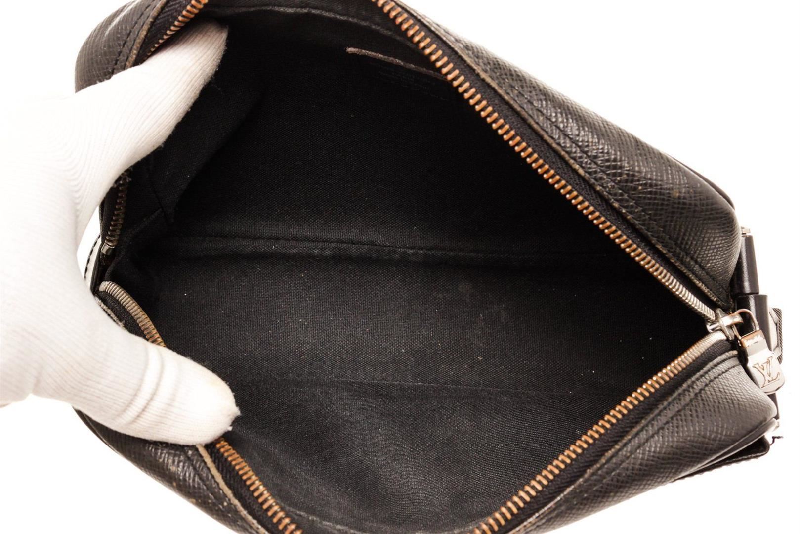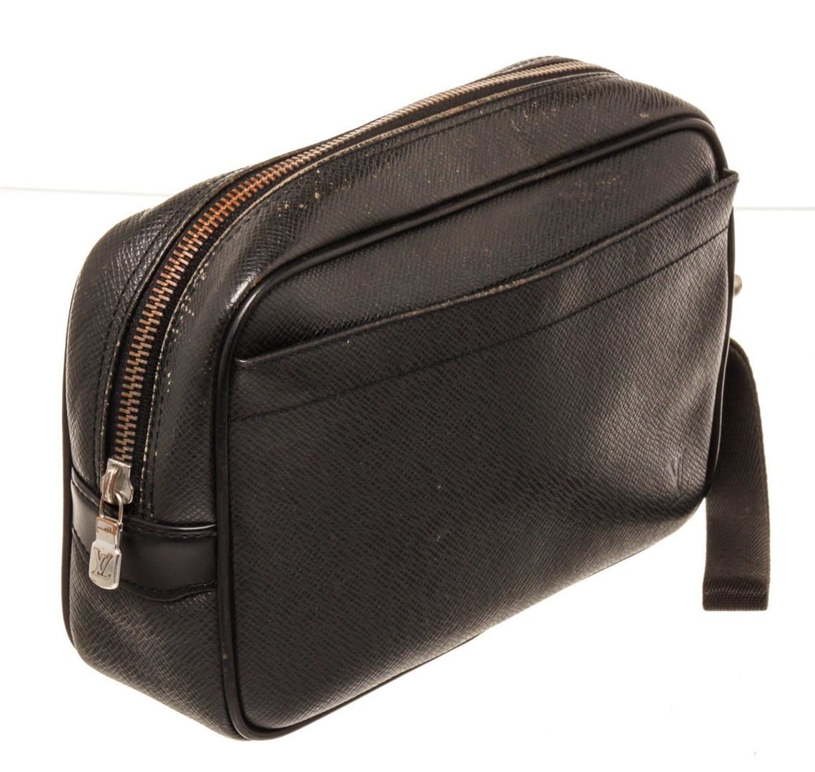 Louis Vuitton Black Leather Kaluga Wallet with leather, gold-tone hardware, trim tan vachetta leather, interior slip pockets and zipper closure.