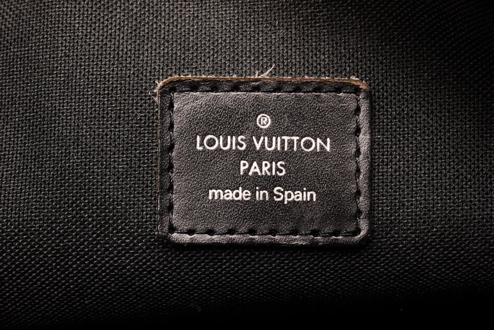 Louis Vuitton Black Leather Kaluga Wallet with leather, gold-tone hardware, trim tan vachetta leather, interior slip pockets and zipper closure.