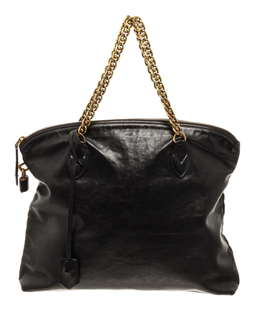 One Louis Vuitton Black Leather Lockit Shoulder Bag. Item is sold AS-IS. All available information is listed in the description and shown in the photo. Louis Vuitton Black Leather Lockit Shoulder Bag with chain shoulder strap, lock & clochette, leather lining, gold tone hardware, zipper closure.