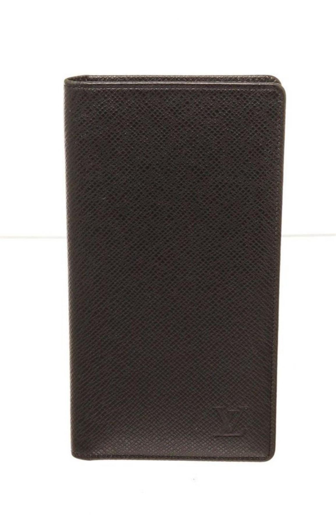 Louis Vuitton Black Leather Long Card Wallet. Louis Vuitton Black Leather Long Card Wallet with material leather, gold-tone hardware, interior card holder pockets, trim tan vachetta leather, flap closure.