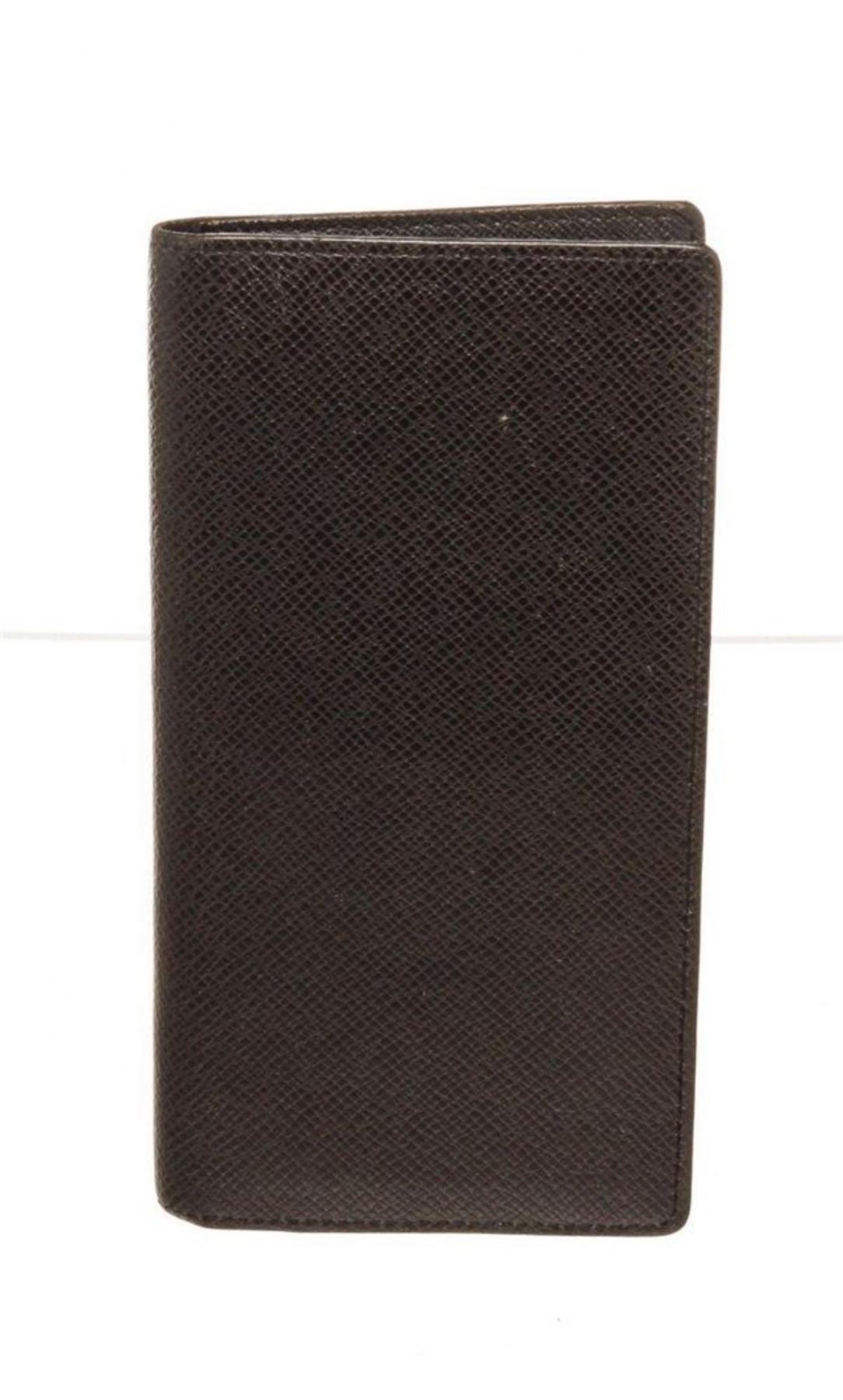 Louis Vuitton Black Leather Long Card Wallet. Louis Vuitton Black Leather Long Card Wallet with material leather, gold-tone hardware, interior card holder pockets, trim tan vachetta leather, flap closure.