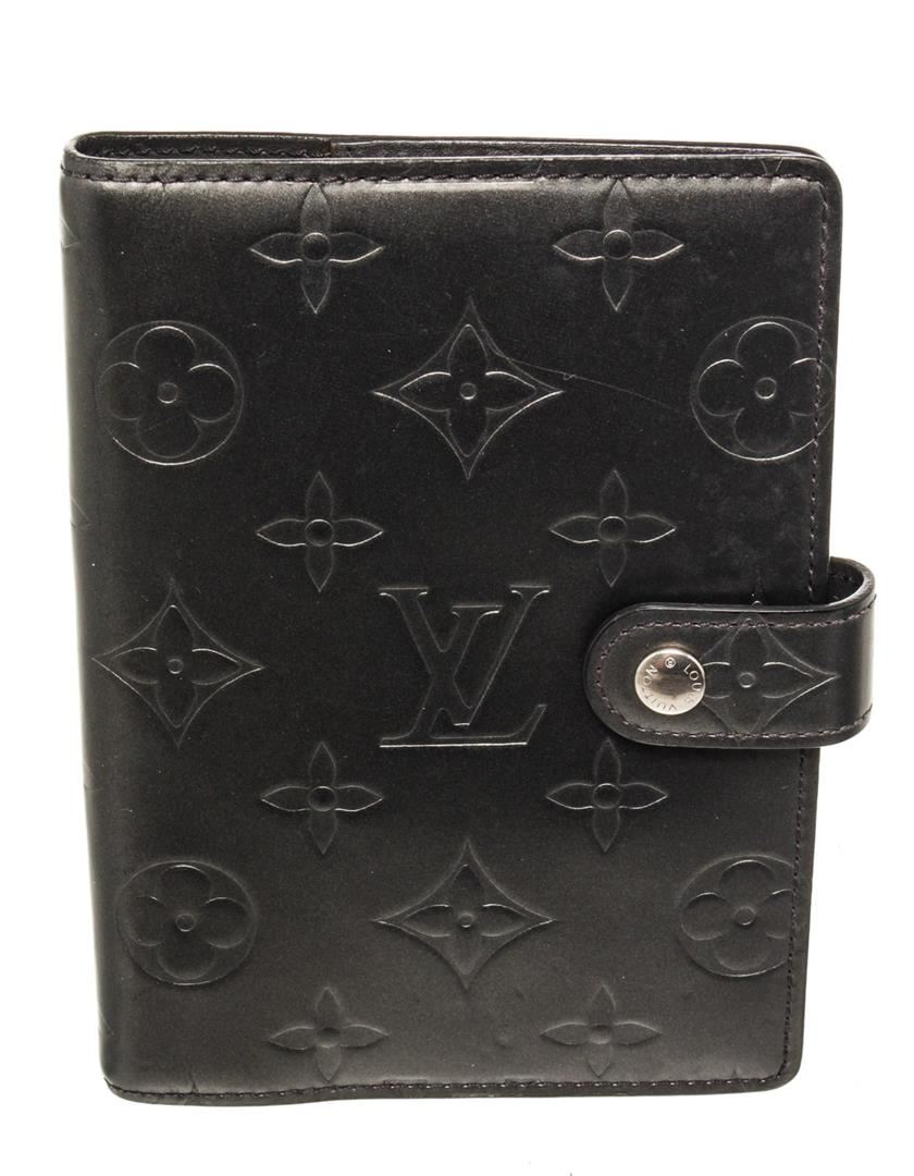Louis Vuitton Black Monogram Canvas Agenda PM Wallet with monogram canvas, with gold-tone hardware, trim tan vachetta, leather leather lining, interior three compartments pocket and snap closure.
