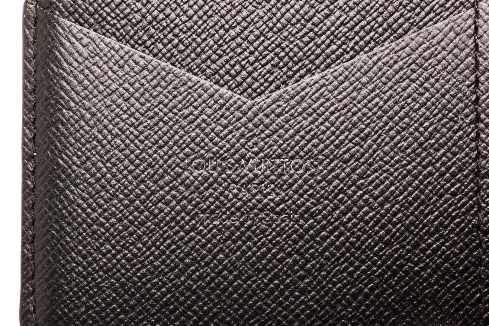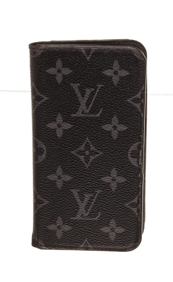 Louis Vuitton Black Monogram Canvas Leather Iphone 7 Case Wallet with black leather lining, interior compartments and bifold closure.