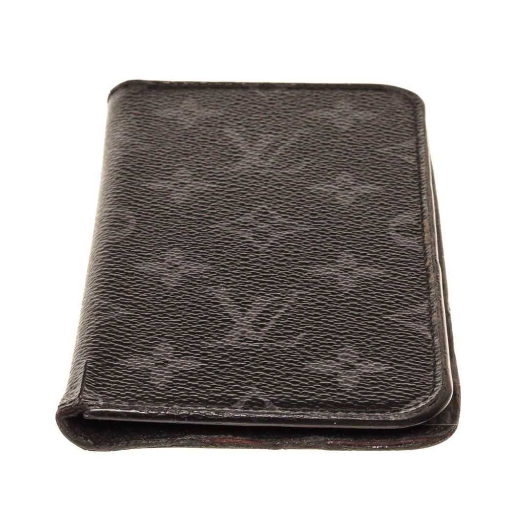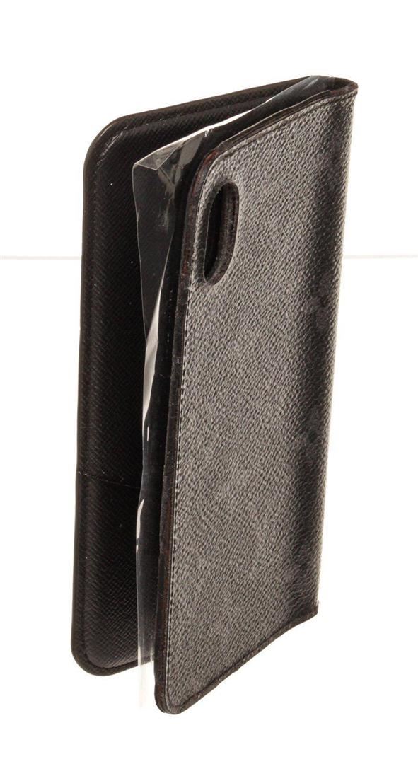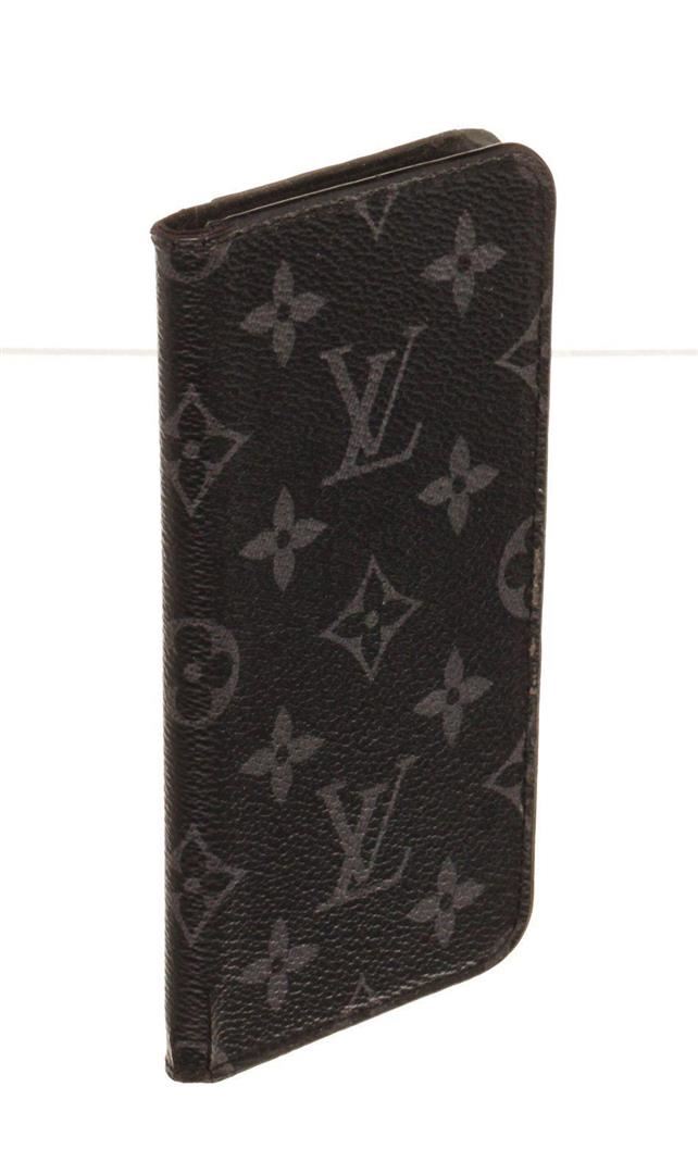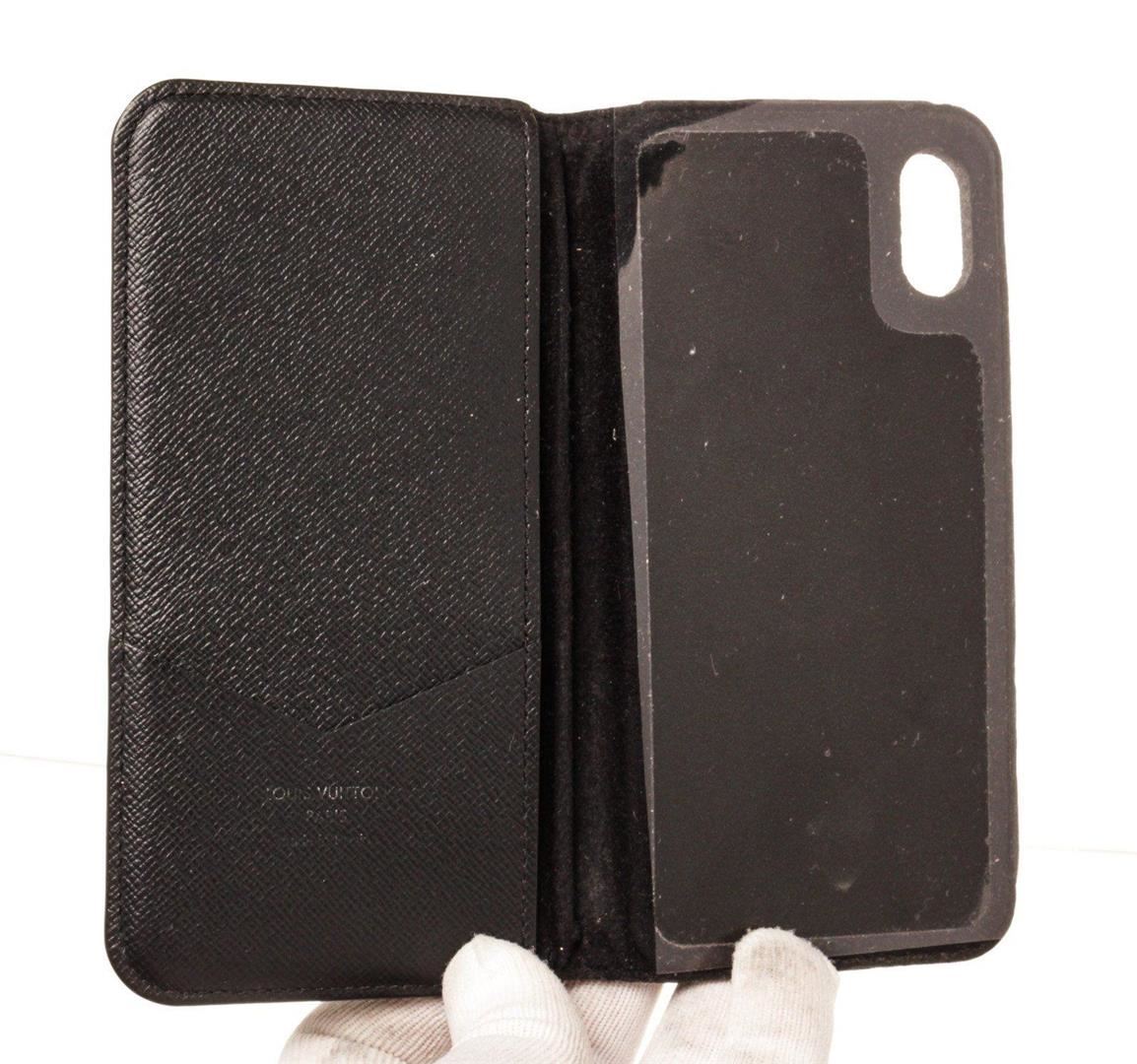 Louis Vuitton Black Monogram Canvas Leather Iphone 7 Case Wallet with black leather lining, interior compartments and bifold closure.