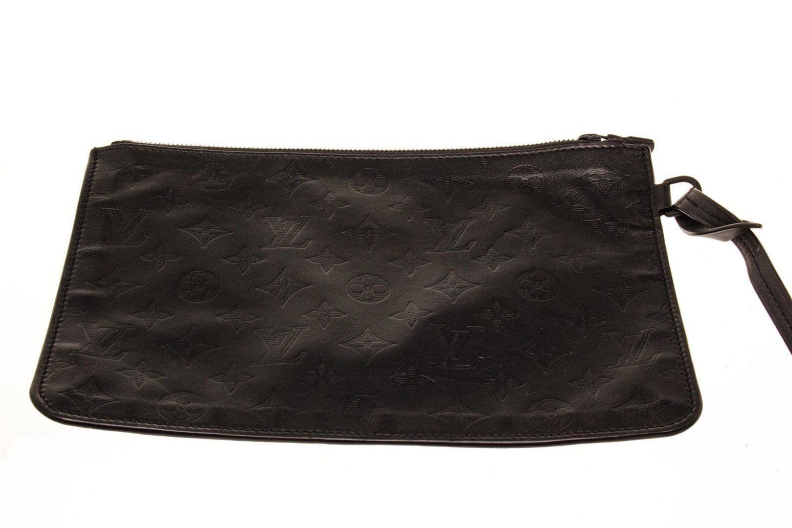 Louis Vuitton Black Monogram Canvas Shadow Tote Bag with silver tone hardware, Two exterior pockets and drawstring closure.