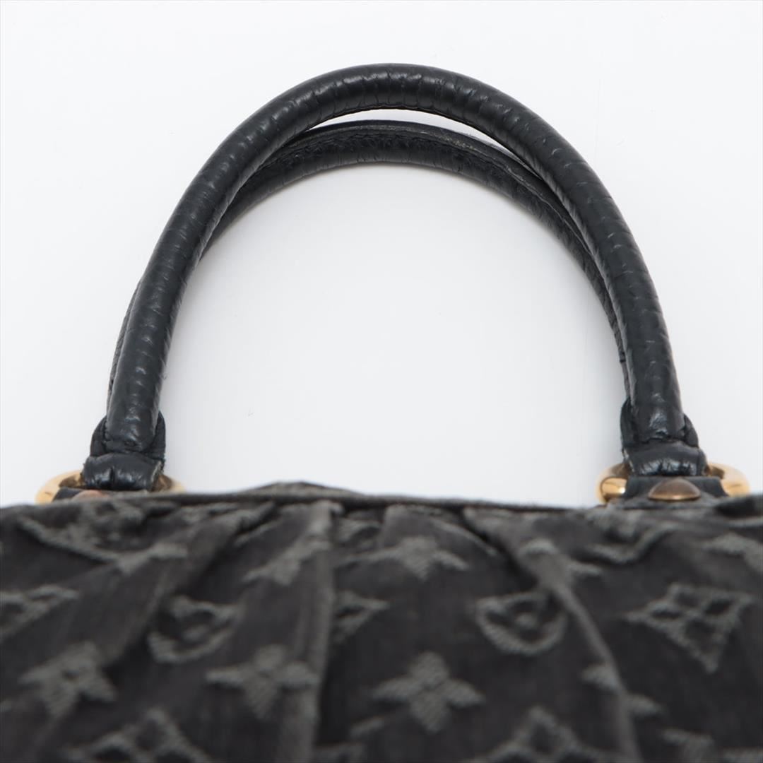 One Louis Vuitton Black Monogram Denim Neo Cabby MM Shoulder Bag. Item is sold AS-IS. All available information is listed in the description and shown in the photo. Black Monogram denim of Louis Vuitton Neo Cabby MM Shoulder Bag with gold-tone hardware, black leather trim, two rolled handles with one detachable shoulder strap, marigold Alcantara lining with dual interior pockets and zip closure at top. Height: 10.5" Width: 15" Depth: 5" Shoulder Strap Drop: 9.5" Handle Drop: 5"