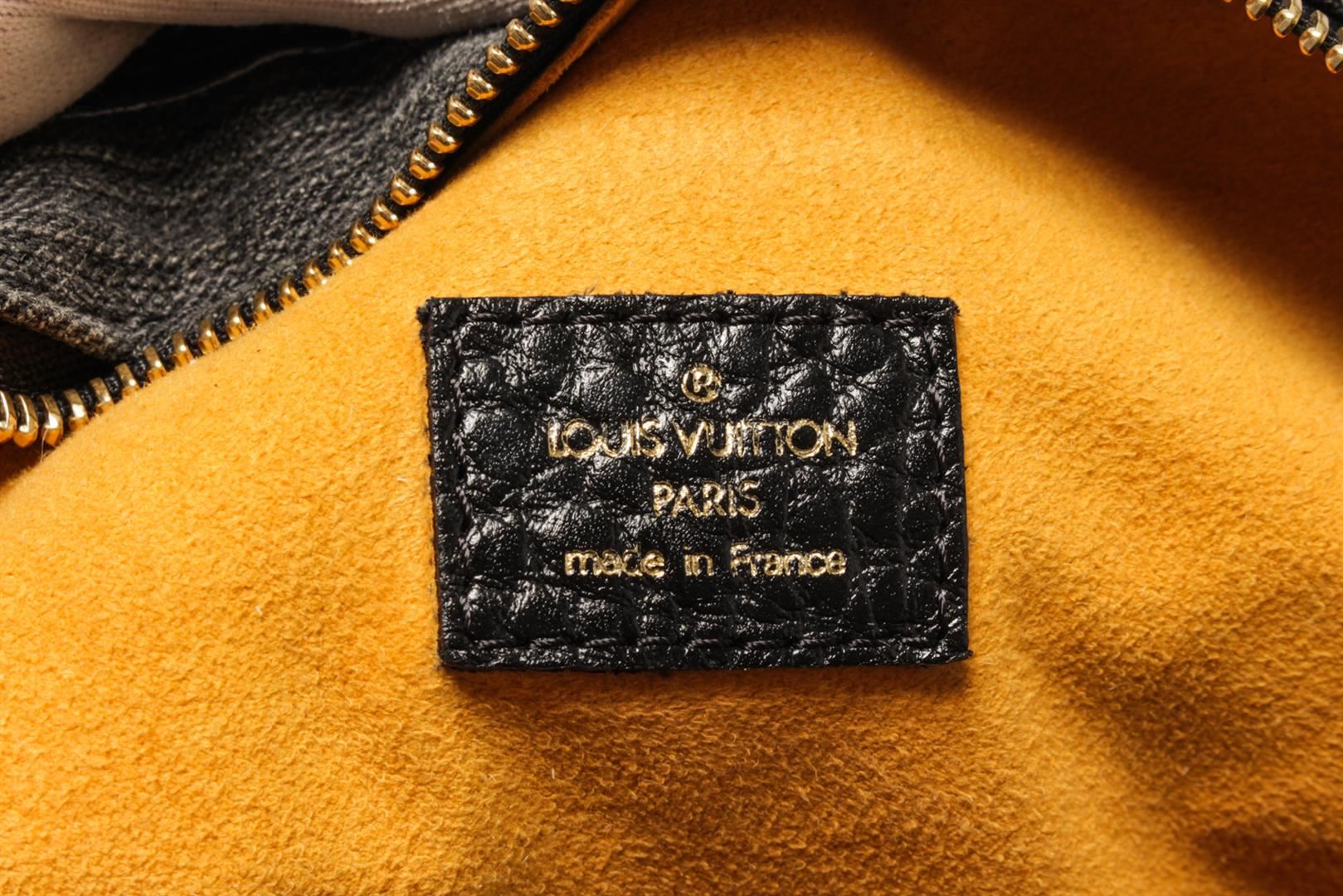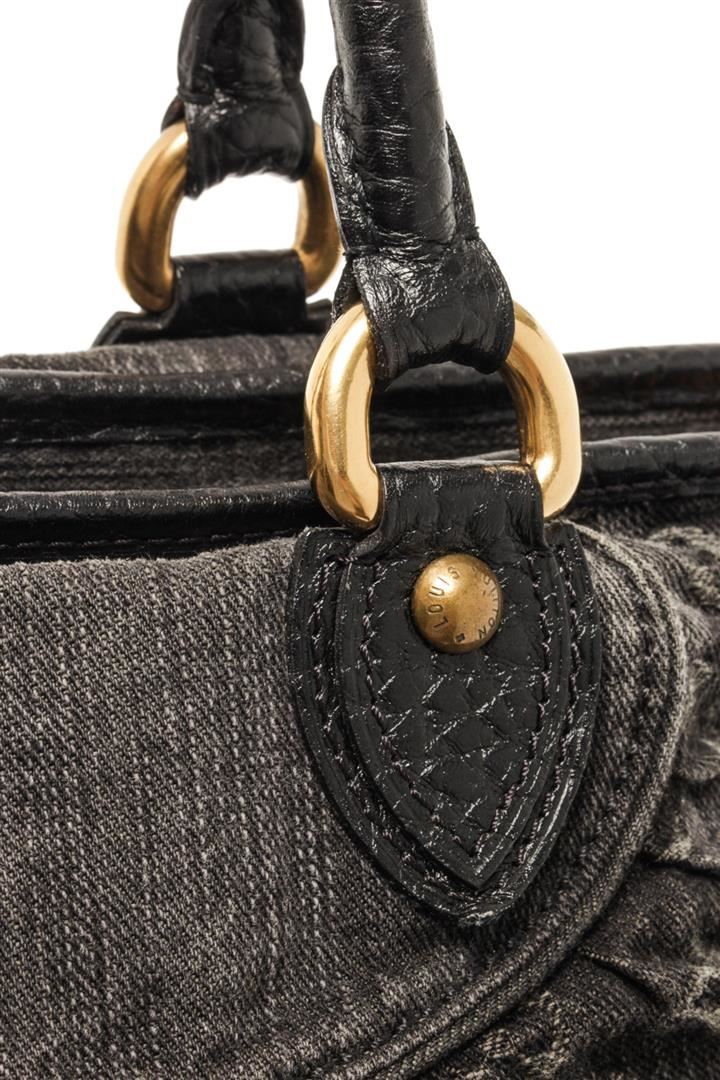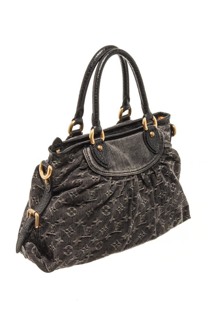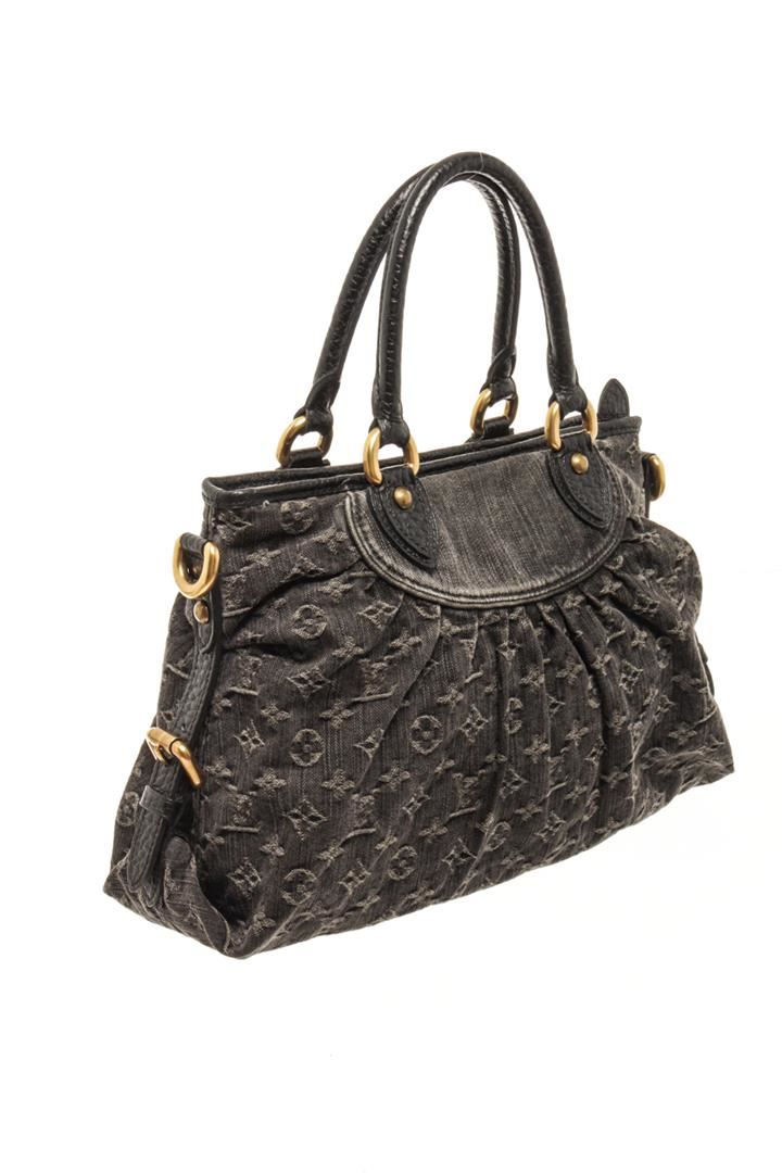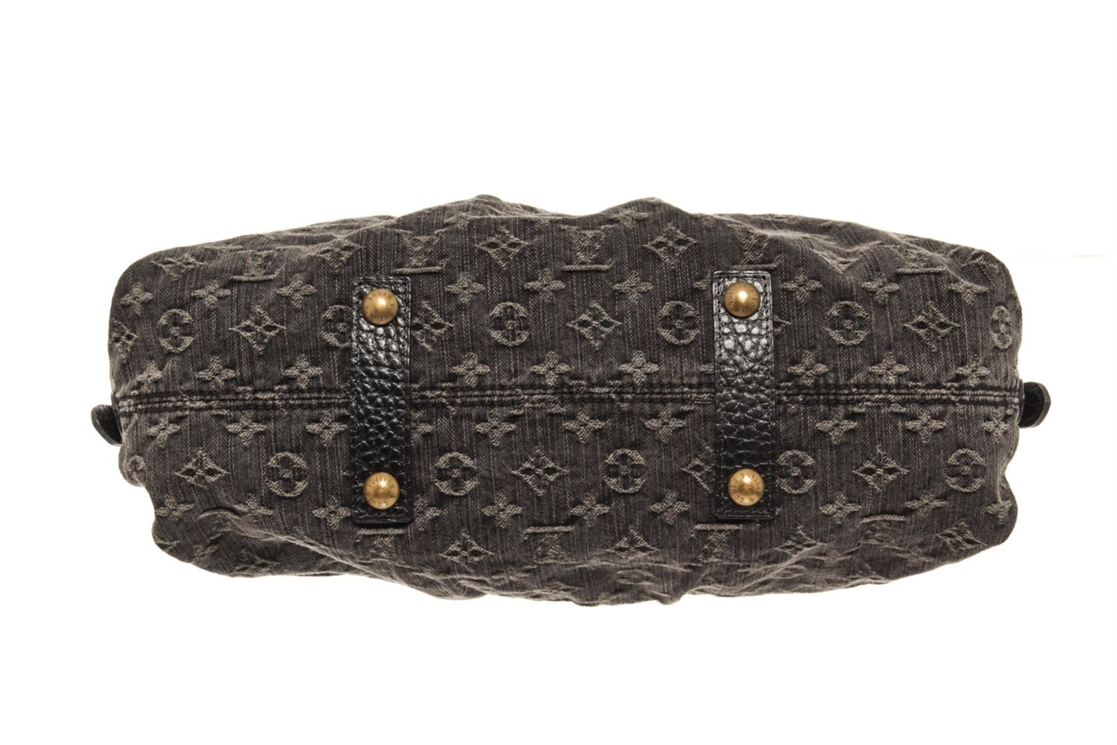 One Louis Vuitton Black Monogram Denim Neo Cabby MM Shoulder Bag. Item is sold AS-IS. All available information is listed in the description and shown in the photo. louis vuitton black monogram denim neo cabby mm shoulder bag with gold-tone hardware, black denim monogram jacquard top zip, side buckle fastening, two rolled top handles, internal logo patch internal patch pockets, full lining metal feet.
