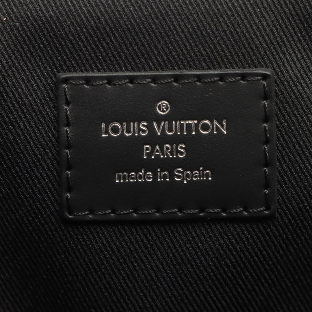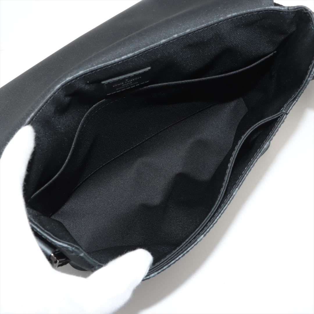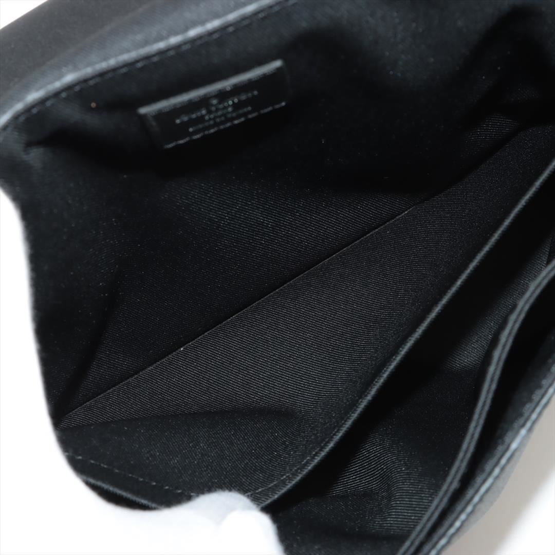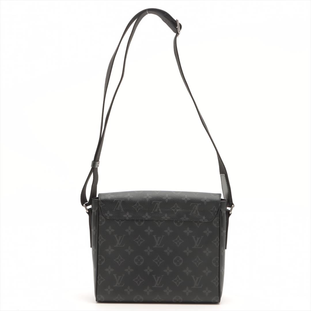 Black and gray monogram Eclipse coated canvas Louis Vuitton District NM PM messenger bag with silver-tone hardware, black leather trim, single adjustable shoulder strap, front flap adorned with black LV Monogram enamel, black canvas lining and dual interi