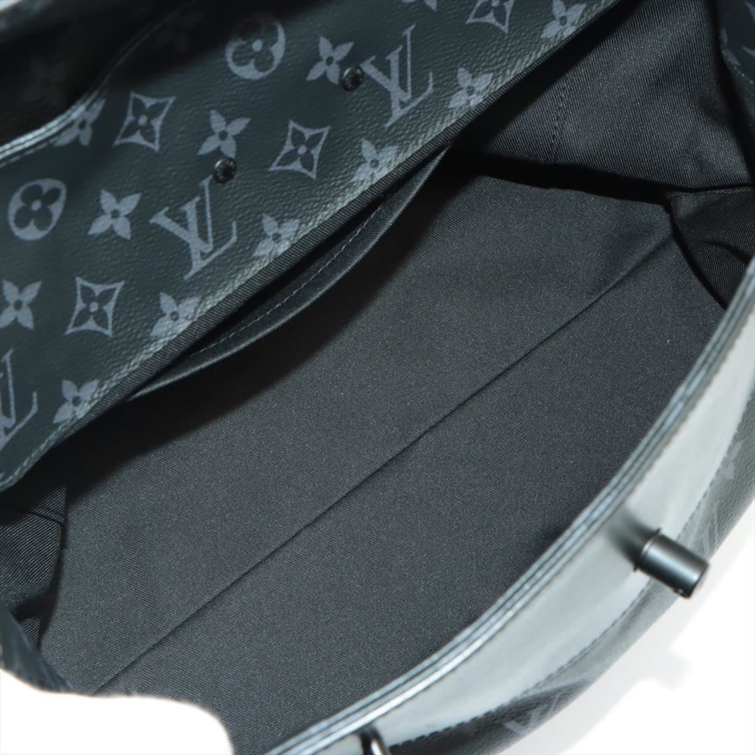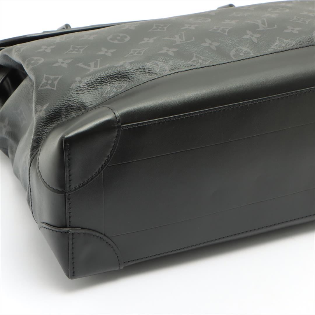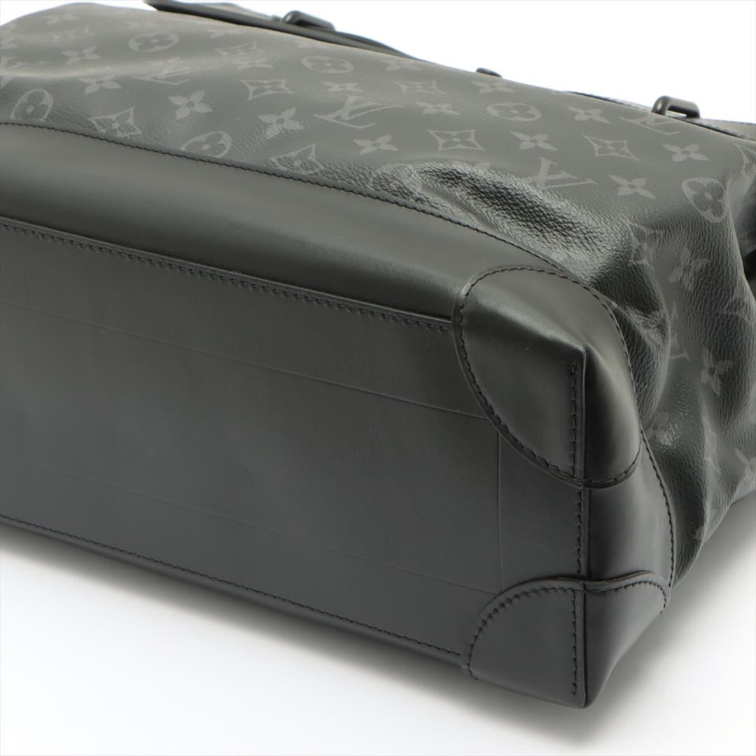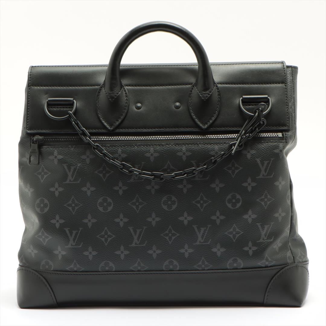 Black and gray monogram Eclipse coated canvas Louis Vuitton Steamer PM bag with black-coated hardware, black leather trim, single rolled handle, chain-link accent, detachable shoulder strap, black grosgrain canvas lining & dual interior pockets and push-l