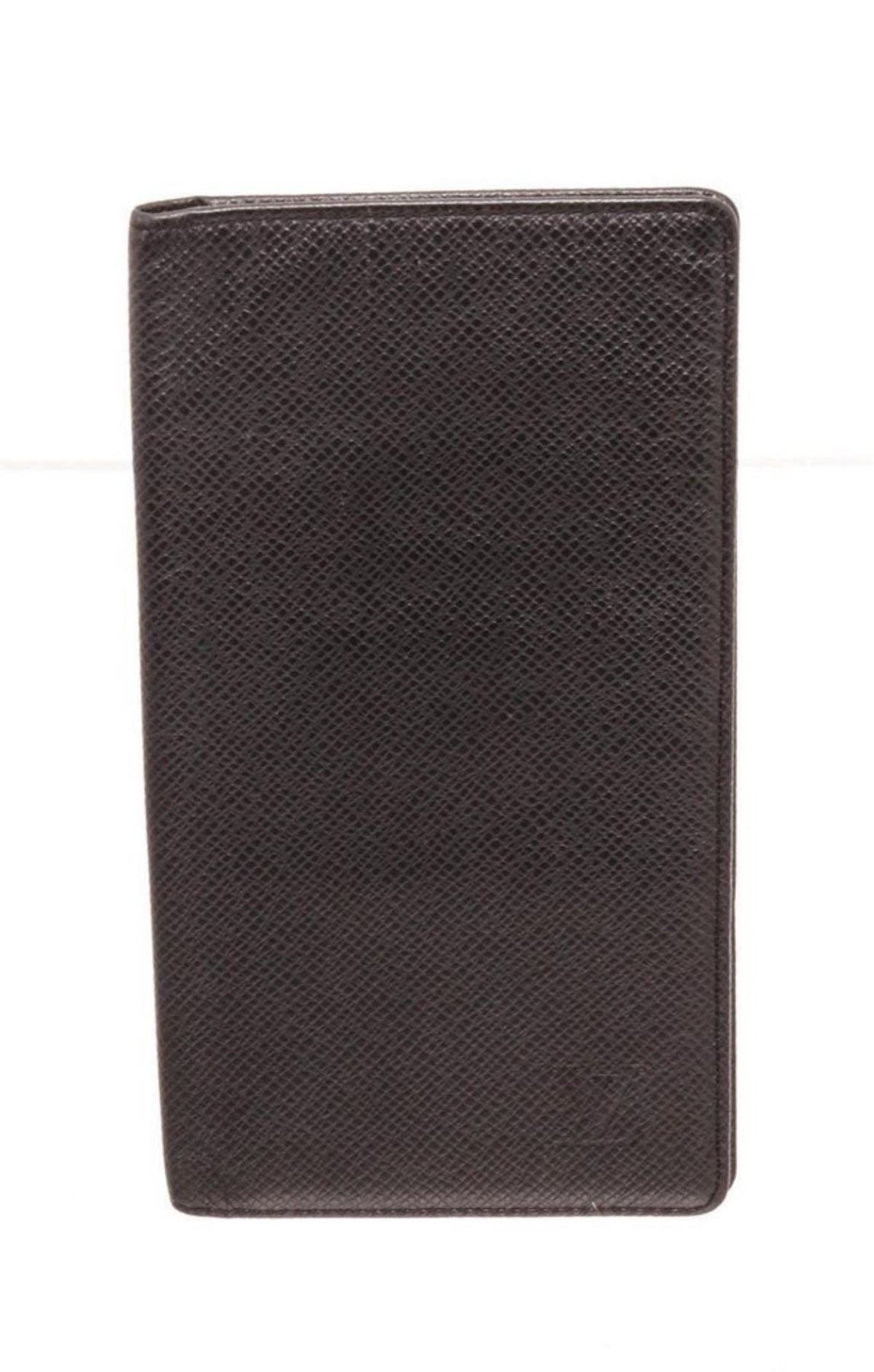 Louis Vuitton Black Monogram Long Card Wallet with gold-tone hardware, monogram material, tan vachetta leather trim, and flap closure.      Measurements:  Length: 8 in / 20 cm  Width: 1 in / 3 cm  4 in / 10 cmCONDITION: Pre-Owned Good overall, please see photographs for detail.