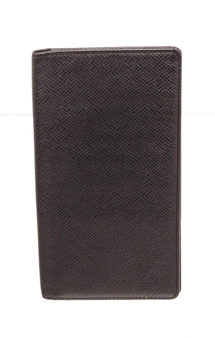 Louis Vuitton Black Monogram Long Card Wallet with gold-tone hardware, monogram material, tan vachetta leather trim, and flap closure. Measurements: Length: 8 in / 20 cm Width: 1 in / 3 cm 4 in / 10 cmCONDITION: Pre-Owned Good overall, please see photographs for detail.