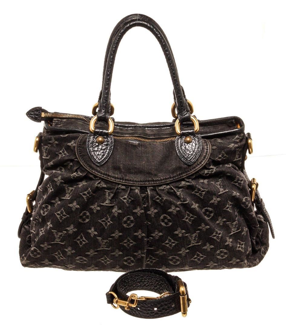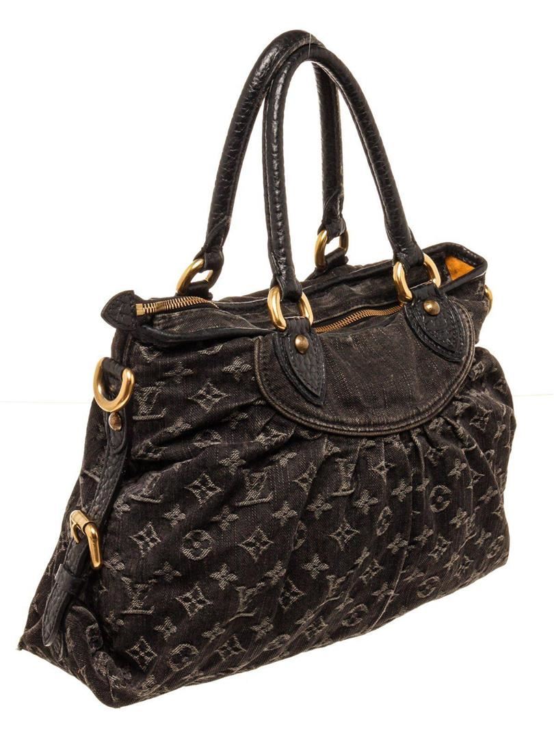Louis Vuitton Black Monogram Neo Cabby MM Shoulder Bag with material monogram canvas, gold-tone hardware, interior slip pocket, shoulder strap and zipper closure.