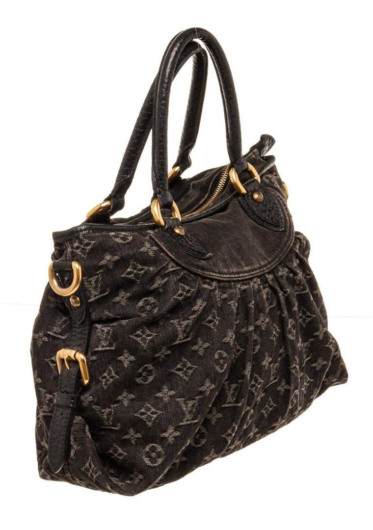 Louis Vuitton Black Monogram Neo Cabby MM Shoulder Bag with material monogram canvas, gold-tone hardware, interior slip pocket, shoulder strap and zipper closure.