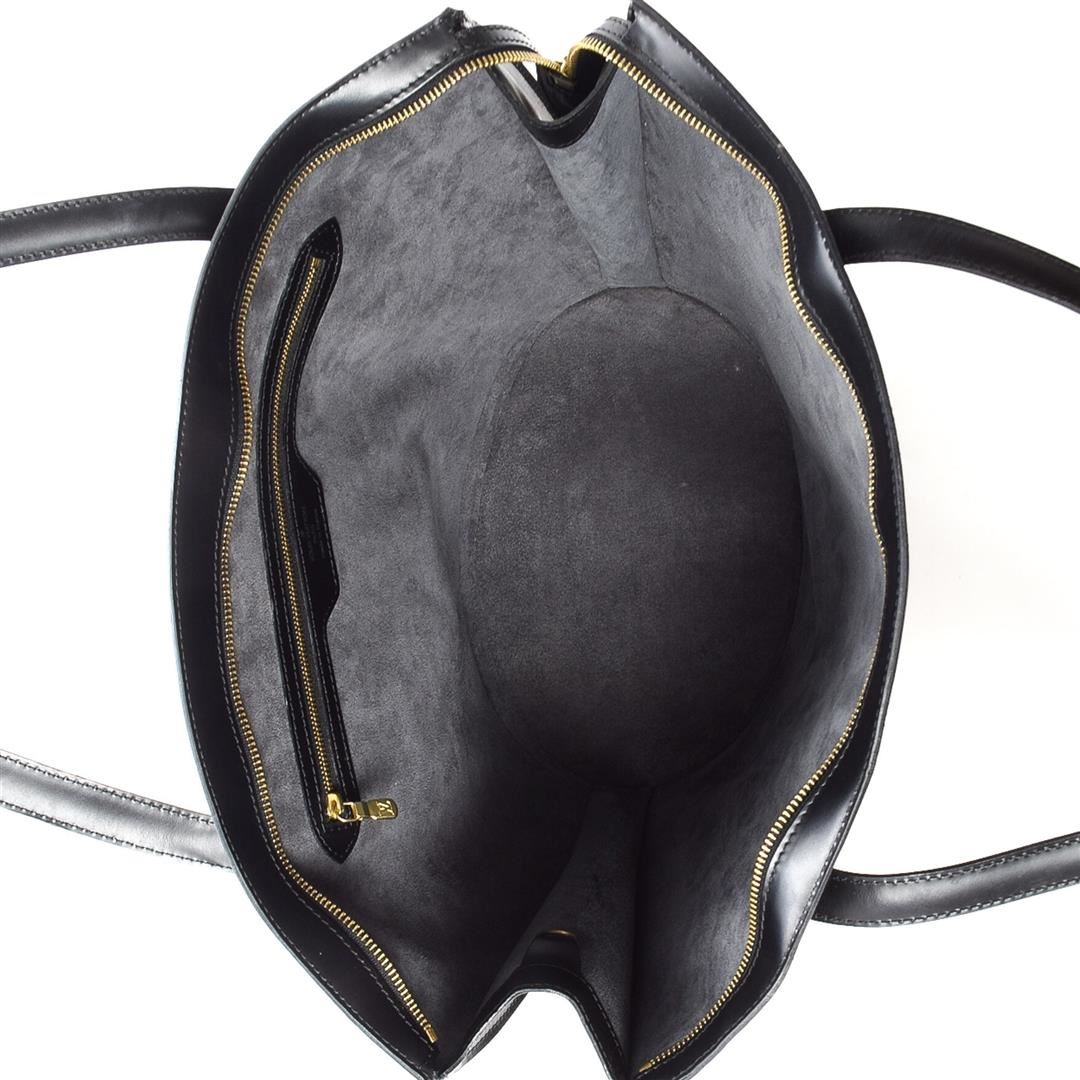 Louis Vuitton Black Monogram St. Jacques Shopping Tote Bag. Please see photos and description for all available information! Louis Vuitton Black Monogram St. Jacques Shopping Tote Bag with gold-tone hardware, monogram material, tan vachetta leather trim, dual top handle, leather shoulder strap, and zipper closure.
